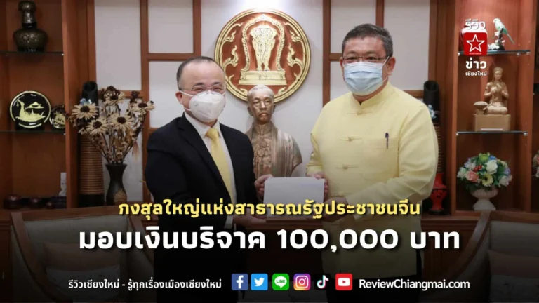 กงสุลใหญ่แห่งสาธารณรัฐประชาชนจีน ประจำเชียงใหม่ มอบเงินบริจาค 100,000 บาท เพื่อช่วยเหลือและป้องกันการแพร่ระบาดจากเชื้อไวรัสโควิด-19