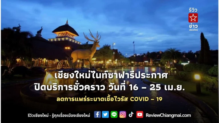 ผู้อำนวยการสำนักงานพัฒนาพิงคนคร เปิดเผยว่า จากการประชุมคณะติดตามการดำเนินงานเฝ้าระวังป้องกันและควบคุมการแพร่ระบาดโรคติดเชื้อไวรัส COVID – 19 เมื่อวันที่ 13 เมษายน 2564 มีมติให้ปิดการให้บริการเชียงใหม่ไนท์ซาฟารีเป็นการชั่วคราว เพื่อเป็นการควบคุมและลดการแพร่ระบาดของโรคติดเชื้อไวรัส COVID – 19 ที่ขยายออกไปเป็นวงกว้าง รวมถึงลดความเสี่ยงที่จะเป็นแหล่งการแพร่ระบาดของเชื้อไวรัส COVID – 19
