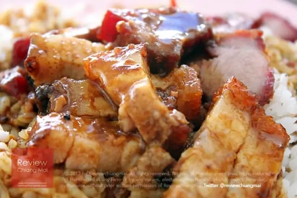 โอเค ในเมื่อน้ำจิ้มข้าวหมูแดงไม่มี ก็กินเลยล่ะกัน หมูกรอบพอเข้าปาก ก็เคี้ยวง่ายไม่แข็ง เนื้อในนุ่ม ส่วนหมูแดงหั่นเป็นชิ้นบางๆพอดีคำ น้ำราดไม่หวานเกินไป อยู่ในขั้นพอดี ข้าวหุงอยู่ในระดับมาตรฐาน โดยรวมแล้วต้องบอกว่า พอกินได้ถึงขั้นดี