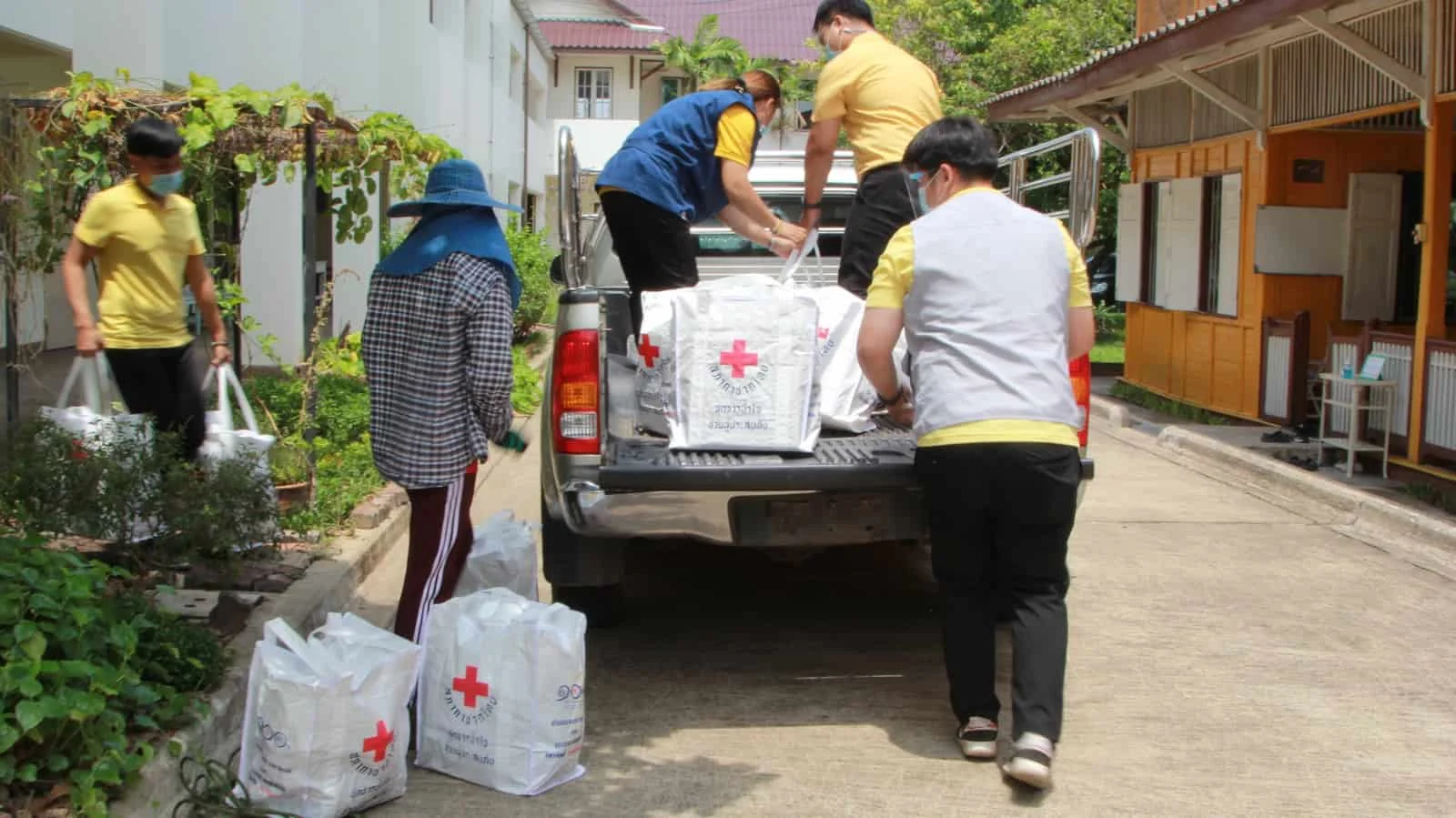 เหล่ากาชาดจังหวัดเชียงใหม่ มอบชุดธารน้ำใจกู้ชีวิตฝ่าวิกฤตโควิด-19 จำนวน 88 ชุด ให้กับผู้กักตัว 14 วัน ที่ได้รับความเดือดร้อนและมีฐานะยากจน ในพื้นที่อำเภอแม่แตง จังหวัดเชียงใหม่