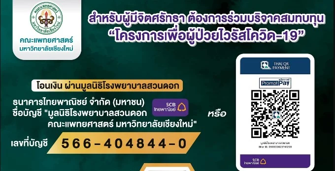 สอบถามรายละเอียดเพิ่มเติมได้ที่ มูลนิธิโรงพยาบาลสวนดอก วันจันทร์ - วันศุกร์ 053-938400 วันเสาร์ - วันอาทิตย์ และวันหยุดนักขัตฤกษ์ 053-938800