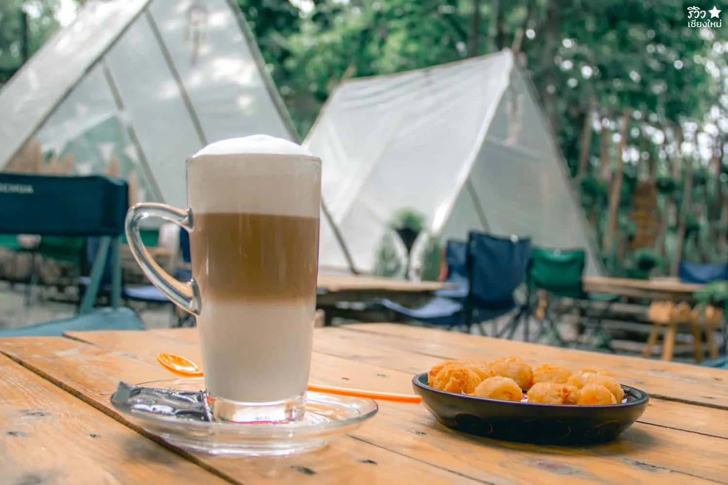 นอกจากจะมาเสพบรรยากาศแคมป์ปิ้งแล้ว เรื่องของอาหาร ของกิน ที่นี่ก็จัดไว้ให้ครบเหมือนได้มาแคมป์จริง มีทั้งเมนูอาหารทานเล่น สมูทตี้ ชา-กาแฟ และเครื่องดื่ม ตวยเน้อ