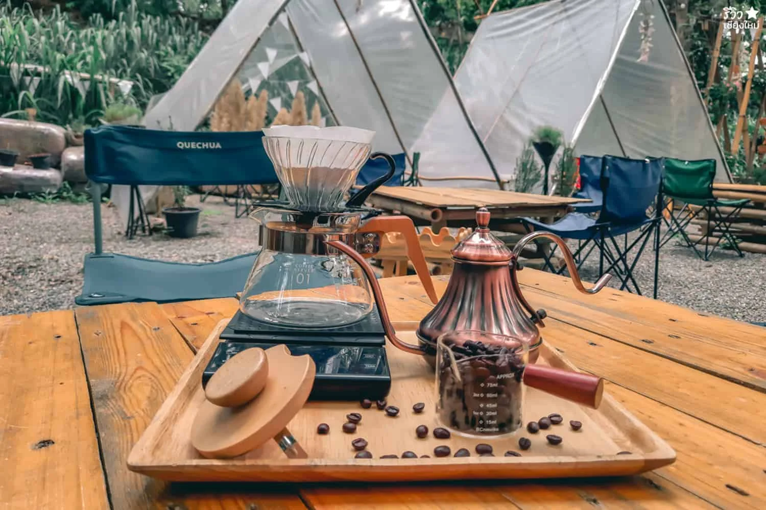 คาเฟ่สไตล์แคมป์ปิ้ง เอาใจคนที่ชอบออกไปตั้งแคมป์อย่างแอด แต่ติดที่ช่วงนี้ออกไปตั้งแคมป์ไหนไม่ได้ ก็ได้แต่แวะมาที่นี่แหละ ที่เยี่ยวยาหัวใจแอดได้