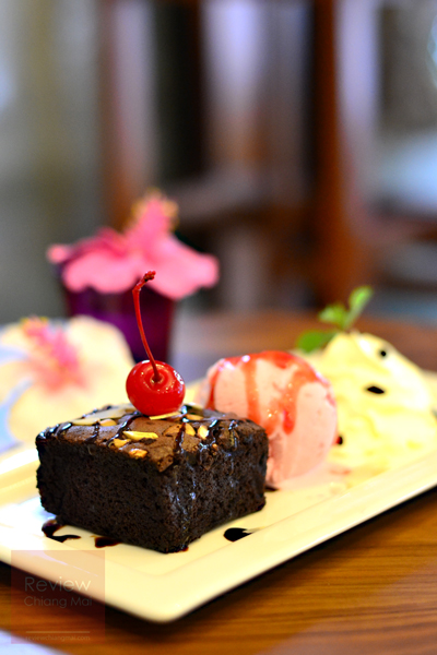 ส่วนเมนูของหวานจานเด็ดที่ไม่อยากให้พลาดอีกเช่นกัน “Fudge Brownie with Ice cream” บราวนี่ชิ้นหนา รสชาติเข้ม อิ่มอารมณ์ช็อคโกแลต นุ่ม หนึบเวลาเคี้ยว มาคู่กับไอศครีมสตรอเบอรี่ มันช่างเป็นความแตกต่างที่เข้ากันอย่างลงตัว ยั่วน้ำลายกันไปในราคา 129 บาท