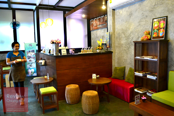ส่วนเมนูกาแฟที่เราได้ลิ้มลองในวันนี้คือ กาแฟเย็นดอยช้าง ซึ่งเป็นสูตรเฉพาะของร้าน รสชาติกลมกล่อม นุ่มละมุน จริงๆ ไม่ผิดหวังสำหรับกาแฟเย็นแก้วนี้ หากใครไม่ดื่มกาแฟก็มีเครื่องดื่มอื่นๆ ให้เลือก ทั้งชา ทั้งอิตาเลี่ยนโซดาและสมูตตี้ ซึ่งอีกหนึ่งแก้วที่เราได้ชิมในวันนี้คือ สตรอเบอรี่สมูตตี้ ที่ให้ความหวาน หอม อมเปรี้ยวนิดๆ สดชื่นทันทีที่ได้ดื่ม หนีอากาศร้อนๆ มานั่งห้องแอร์เย็นฉ่ำ แถมได้แก้วนี้ไปอีก รับรองคลายร้อนได้อย่างดี