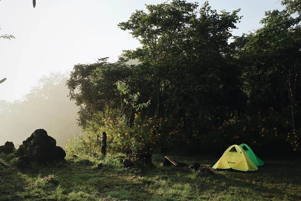 เหลืองกับเขียว ตอนเช้าเจอพระอาทิตย์ขึ้นหน้าเต็นท์เลย