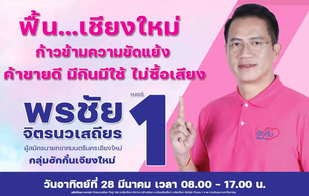 - หมายเลข 1 นายพรชัย จิตรนวเสถียร : กลุ่มฮักกั๋น เจียงใหม่