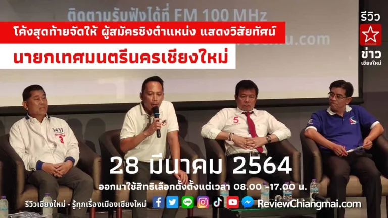 ผมได้มีโอกาสเข้าร่วมรับฟัง การแสดงวิสัยทัศน์ผู้สมัครชิงตำแหน่งนายกเทศมนตรีนคร เชียงใหม่ ที่ คณะการสื่อสารมวลชนมหาวิทยาลัยเชียงใหม่ เมื่อวันที่ 24 มีนาคม 2564 ที่ผ่านมา จัดโดย สถานีวิทยุเสียงสื่อสารมวลชน FM100 ซึ่งมีการถ่ายทอดเสียงผ่านคลื่นวิทยุ และ สื่อสังคมออนไลน์อย่าง Facebook Fanpage ของ FM 100 โดยมีผู้สมัครนายกเทศมนตรีนครเชียงใหม่เข้าร่วม 6 คนจากทั้งหมด 7 คนได้แก่