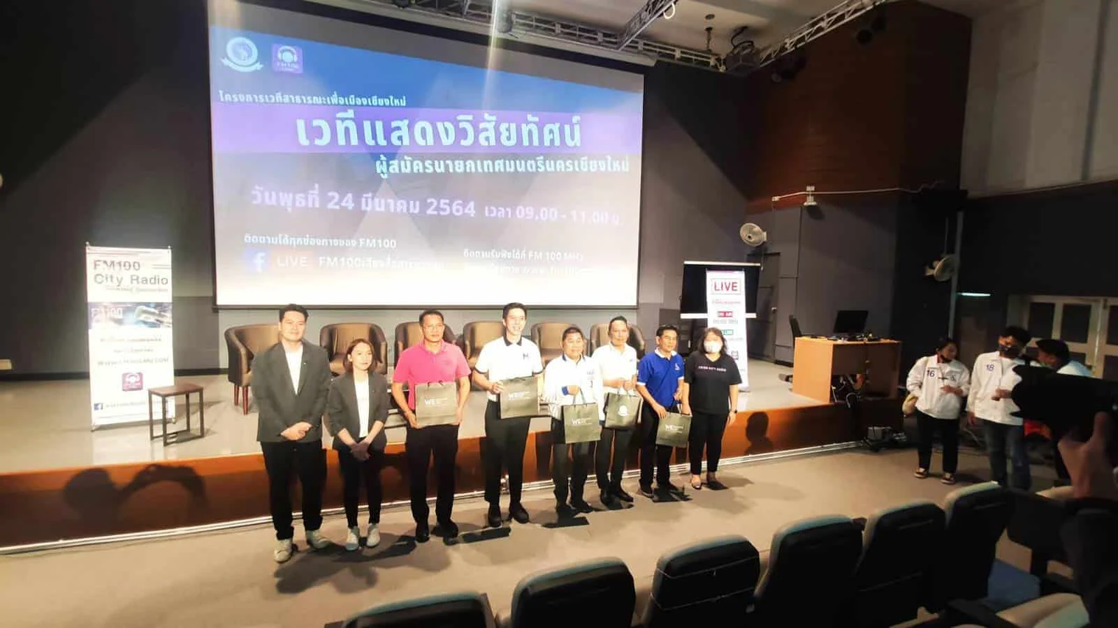 FM 100 เสียงสื่อสารมวลชน จัดเวทีแสดงวิสัยทัศน์ นับเป็นโค้งสุดท้ายแล้วสำหรับการหาเสียง และสร้างความเข้าใจแก่พี่น้องประชาชนผู้มีสิทธิเลือกตั้งในเขตเทศบาลนครเชียงใหม่ ของ
