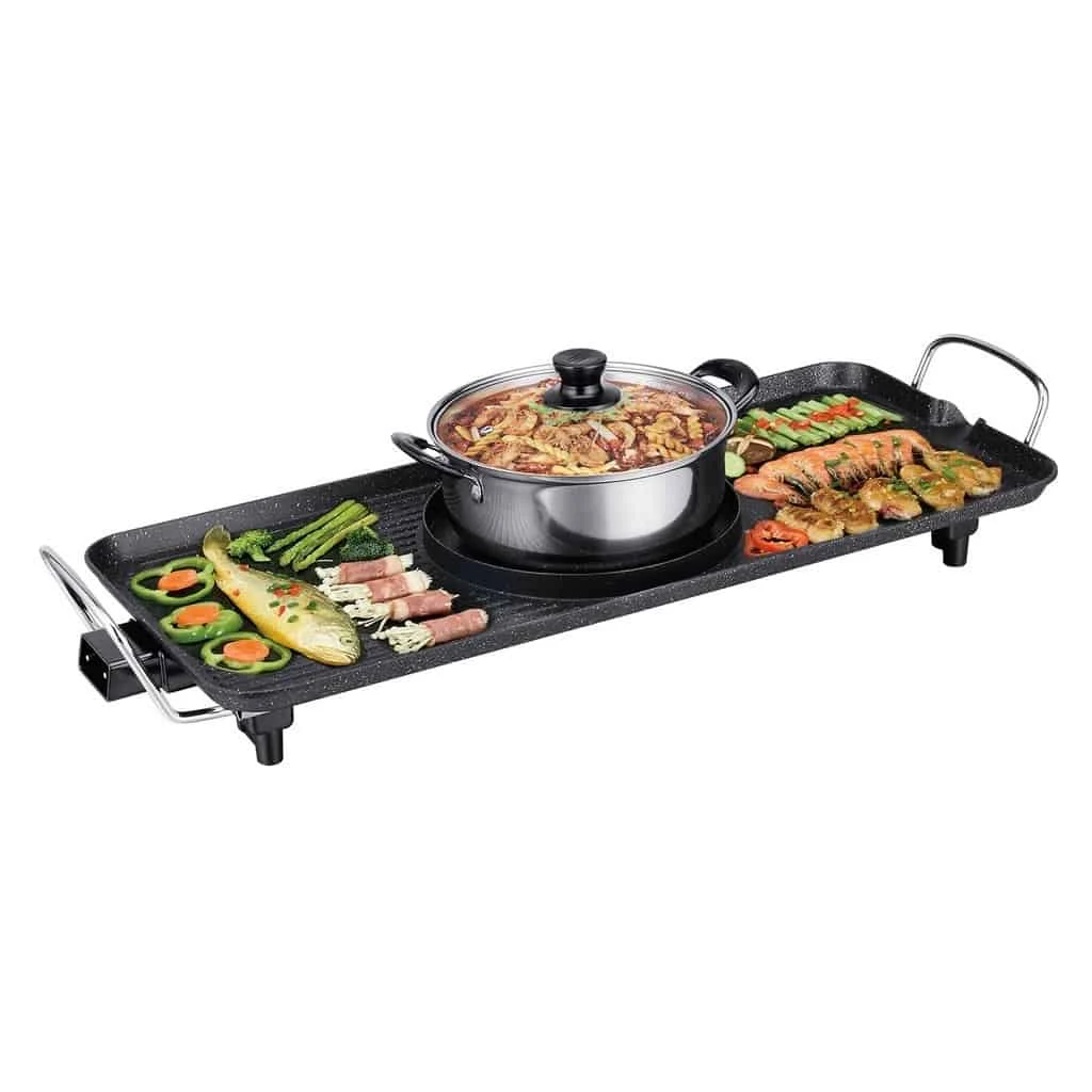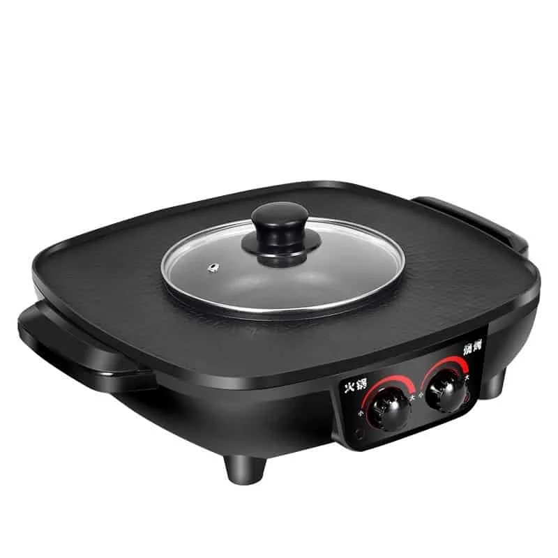 ซื้อ 1 ได้ถึง 2 ทั้งย่างและต้ม มีการออกแบบเป็นอย่างดี สีสวย ทำความสะอาดได้ง่ายไม่เลอะเทอะ สามารถปรับความร้อนได้ทั้งหม้อต้ม และหม้อปิ้งย่างเลยนะ เหมาะสำหรับ 3 – 6 คน ตัวควบคุมไฟแบบคู่ – สามารถปรับความร้อนทั้งหม้อต้มและกระทะได้อย่างอิสระ ตัวเครื่องทำจากอลูมิเนียมซึ่งเคลือบอย่างดี สามารถปิ้งย่างได้แบบไม่ติดกระทะ ทำให้รับประทานง่าย