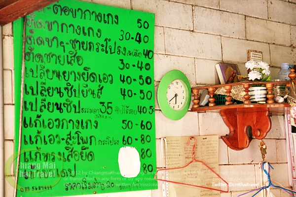 ผมก็ชวนคุยสารทุกข์สุขดิบสักพัก ก็ถามเวลามารับของ คือ พรุ่งนี้ตอนเย็นๆ (ผมเอายีนส์ไปให้แกเกือบๆหกโมงเย็น) ป้ายราคาก็มีบอกไว้ชัดเจนครับ ส่วนกางเกงของผมปะจุดเดียว 40 บาท ถือว่าสมน้ำสมเนื้อครับ ไม่แพงเลย
