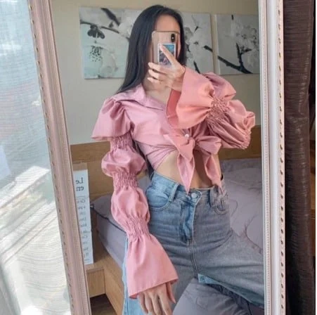 No.3 เสื้อแขนยาว คอปก ทรงเจ้าหญิงผูกหน้าอกด้วยกระดุม