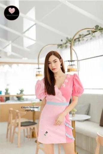 No.1 Rosy Pearl Dress มินิเดรส สีชมพูกุหลาบไข่มุข