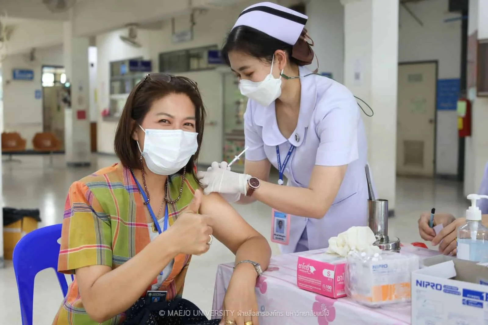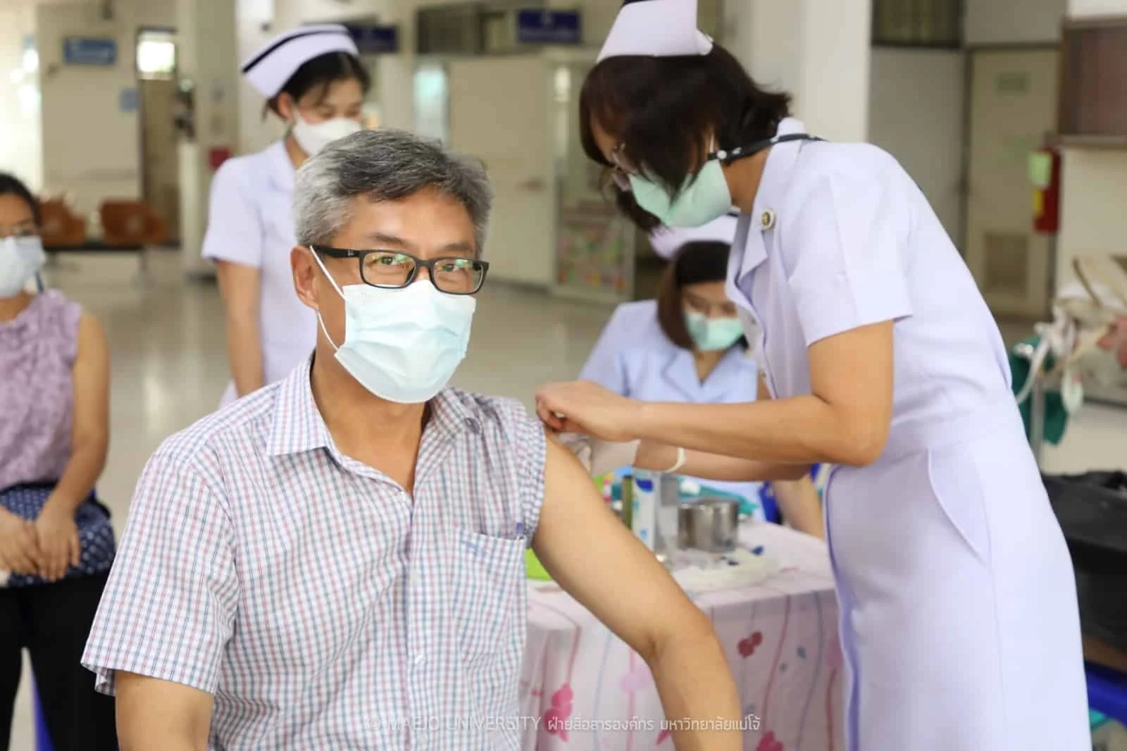 รองศาสตราจารย์ ดร.วีระพล ทองมา อธิการบดี กล่าวเพิ่มเติมว่า “มหาวิทยาลัยห่วงใยบุคลากรทุกคน สำหรับในครั้งนี้ ได้นำบุคลากร เจ้าหน้าที่ ที่ทำงานส่วนหน้า ของโรงพยาบาลสนาม ม.แม่โจ้ เข้ารับวัคซีนโควิด-19 ก่อน จำนวน 90 คน และในอนาคต มหาวิทยาลัยได้มีนโยบายที่ให้บุคลากรของมหาวิทยาลัยแม่โจ้ ได้รับวัคซีนโควิด-19 ครบ 100 % เพื่อสร้างภูมิคุ้มกันโรค ให้กับบุคลากรทุกคน อีกทั้งยังเป็นการสร้างความมั่นใจแก่ผู้ปกครอง และนักศึกษาที่จะเข้ามาเรียนที่มหาวิทยาลัยอีกด้วย”