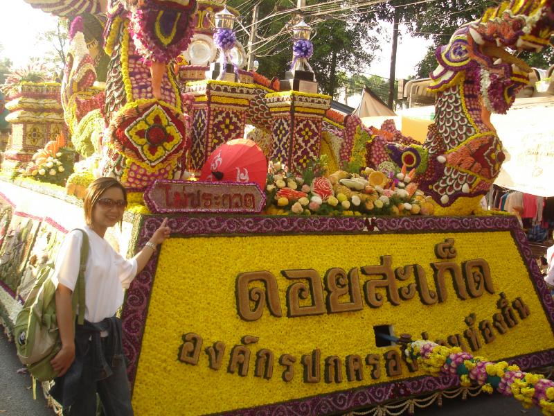 เริ่มจากรถของอำเภอดอยสะเก็ด ที่ได้ยินมาว่า ส่งประกวดเมื่อไหร่ ก็ชนะทุกปี ปีนี้ เค้าเลยจัดมาโชว์เฉยๆ ไม่ส่งเข้าประกวด เพื่อที่คนอื่นๆ จะได้ชนะบ้าง (ล่ะมั๊ง ^^) และพอเห็นรถของเค้า ก็ทำให้เข้าใจเลยว่า ทำไมถึงชนะได้ทุกปี เพราะมีความสร้างสรรค์ ละเอียดและประณีตมากๆ ดูได้จากการจัดเรียงเมล็ดพืช และการนำเศษดอกไม้ชิ้นเล็กๆ (ขอบอกว่าเล็กม๊าก….) มาเรียงกันให้ได้เป็นรูปเป็นร่างขึ้นมา