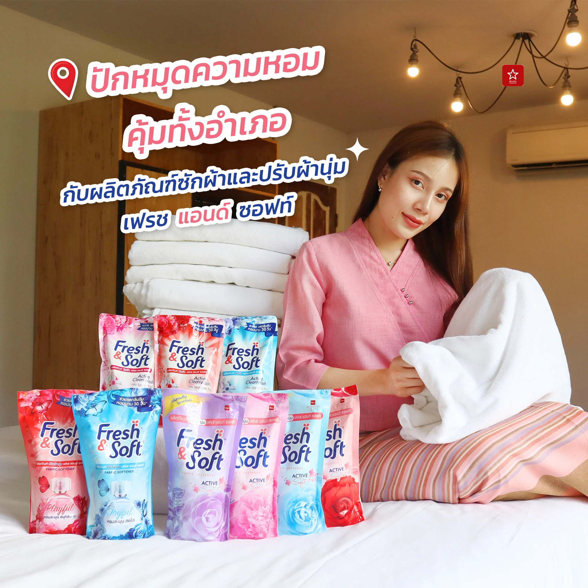 เอาเป๋นว่าไผเจอปัญหาจะอี้ ขอแนะนำ Fresh & Soft โฉมใหม่ มีทั้ง ผลิตภัณฑ์ซักผ้า และ น้ำยาปรับผ้านุ่ม บอกเลยว่าใช้แล้ว หอมฟุ้ง หอมคุ้ม หอมนาน 30 วัน* ช่วยลดกลิ่นอับ แถมราคาโดน ใช้ดีจ๋นต้องบอกหื้อฮู้กั๋นทั่วทั้งอำเภอ มาดูกันว่ามีผลิตภัณฑ์อะไรบ้าง