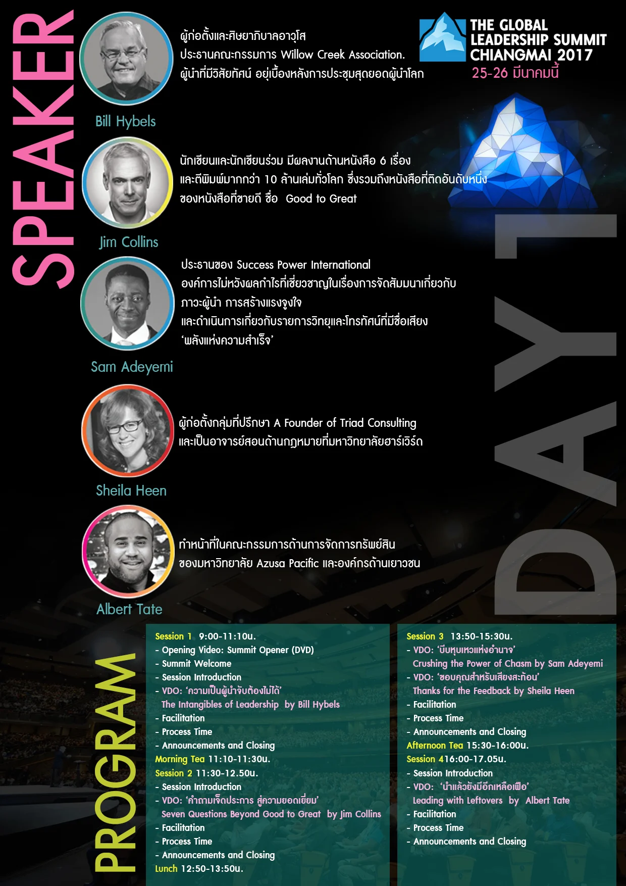 หากคุณเป็นคนหนึ่งที่รักการพัฒนาตัวเอง สัมมนาผู้นำระดับโลก (The Global Leadership Summit Chiangmai 2017) พร้อมให้คุณได้พิสูจน์! GLS มีวัตถุประสงค์เพื่อสร้างวิสัยทัศน์ ขยายความเป็นผู้นำและสร้างแรงบันดาลใจต่อการเปลี่ยนแปลงตัวเอง ธุรกิจ ครอบครัวและ สังคม โดยพิสูจน์แล้วจากผู้เข้าร่วมกว่า 170,000 คนทั่วโลก กว่า 14,000 องค์กรใน 300 เมือง 100 ประเทศ และถูกแปลถึง 50 ภาษา ภายใต้ลิขสิทธิ์ของ Willow Creek Association (WCA) บรรยายภาษาไทยบนจอใหญ่ยักษ์!!