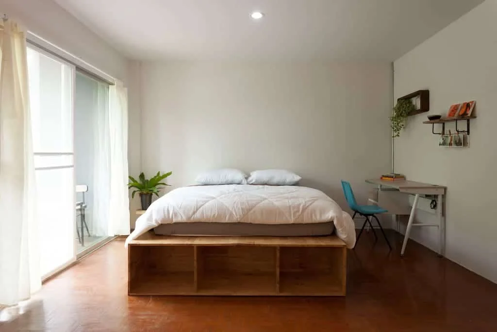 ด้วยเตียงนอนที่ออกแบบมาอย่างดี ฟูกใช้เป็นของอย่างดีไม่ยุบเป็นหลุมแอ่ง ผ้าปูที่นอน หมอน ผ้าห่มสะอาดสะอ้านเปลี่ยนใหม่ทุกครั้ง ทั้งสามห้องนอนติดแอร์เย็นฉ่ำ (ออกไปข้างนอกอย่าลืมปิดนะจ๊ะ) ห้องนอนใหญ่มีพื้นที่กว้างสามารถทำกิจกรรมต่างๆหรือแม้แต่นั่งเล่นนอนเล่นได้สบาย อ้อ และทุกห้องมีโต๊ะทำงานพร้อมโคมไฟให้ด้วยนะ นั่งทำงานชิลๆได้เลย