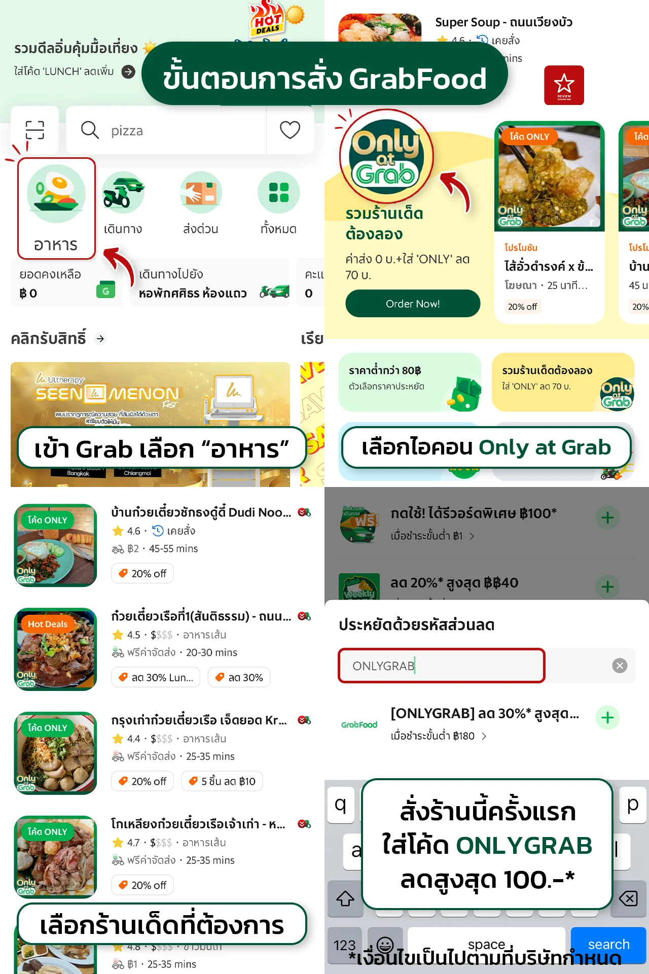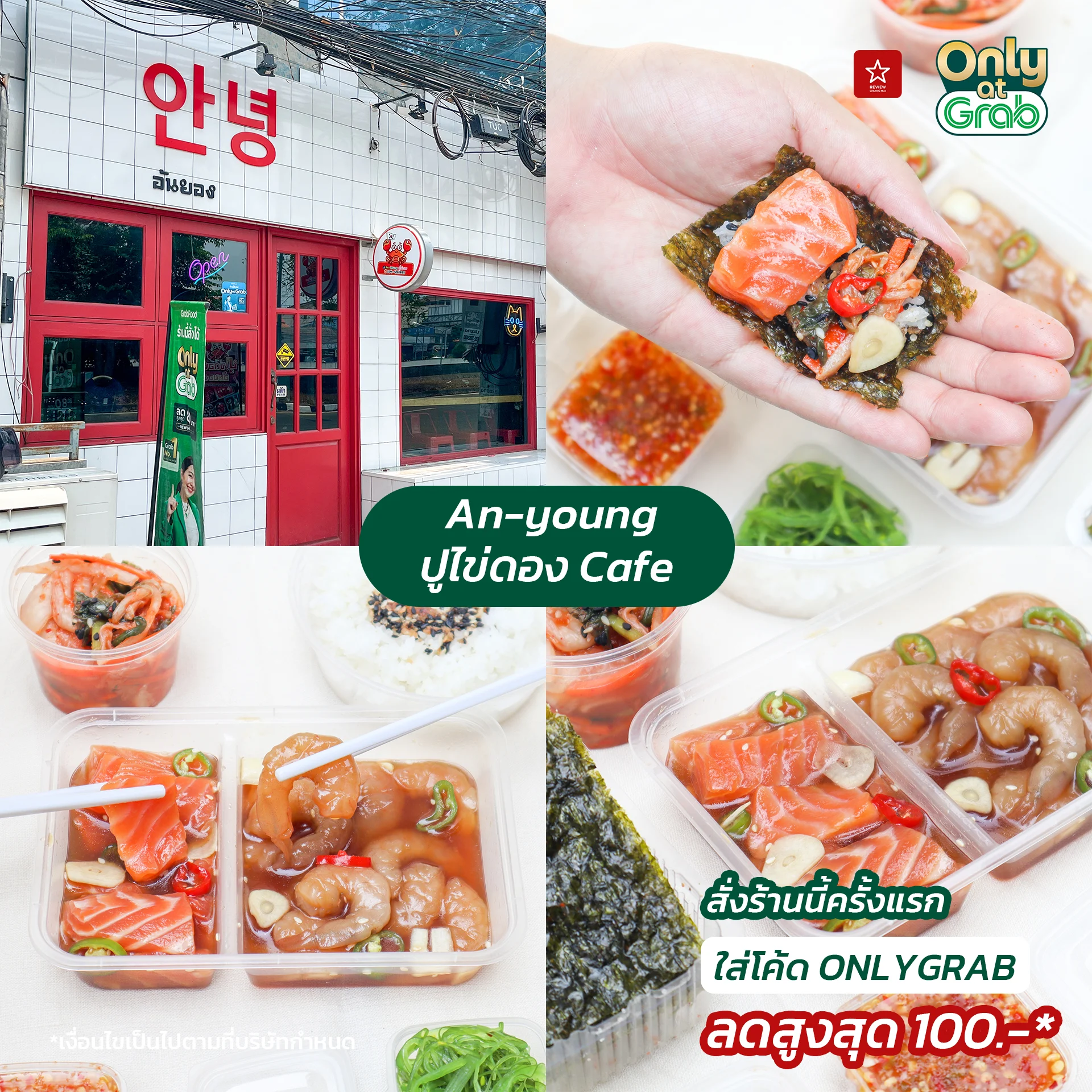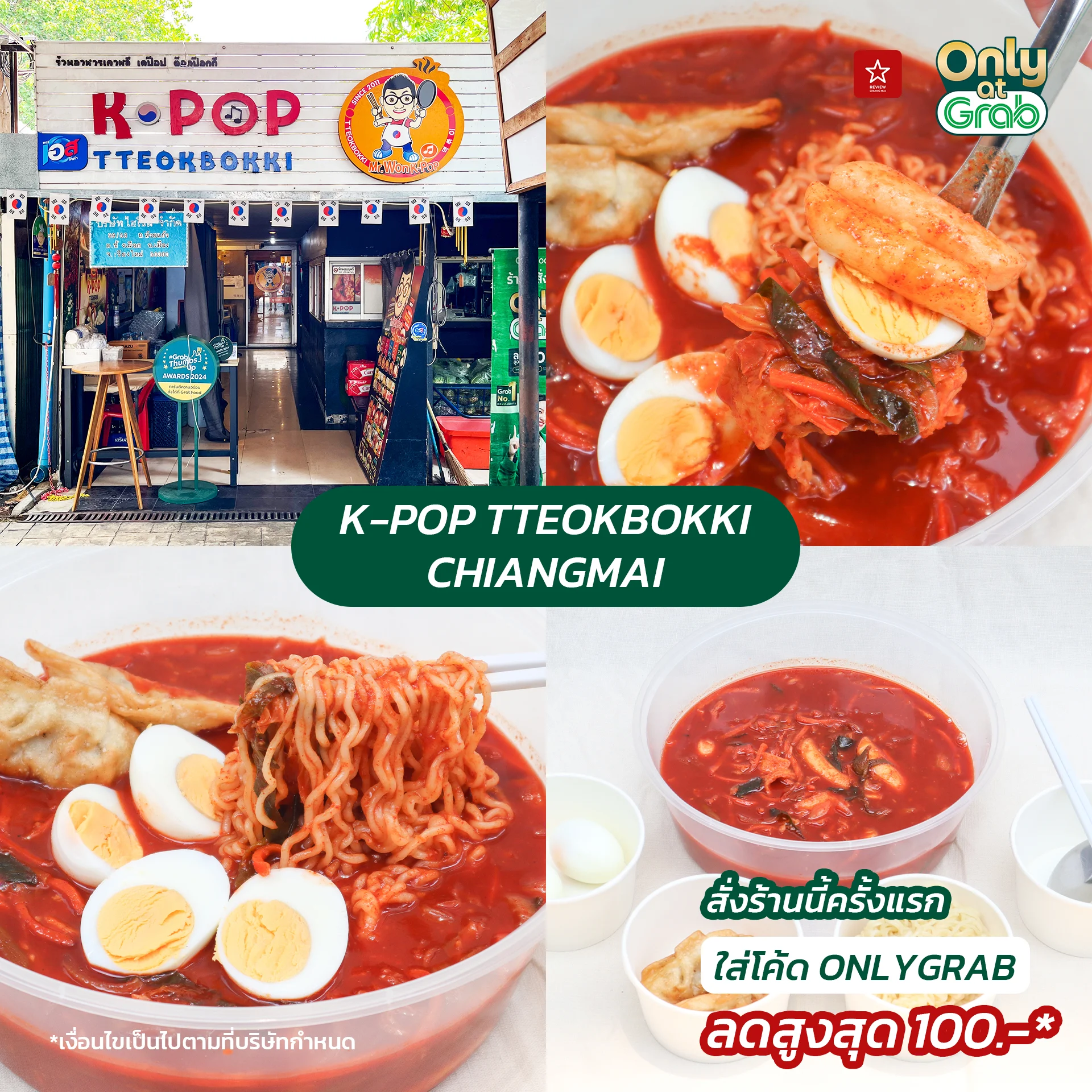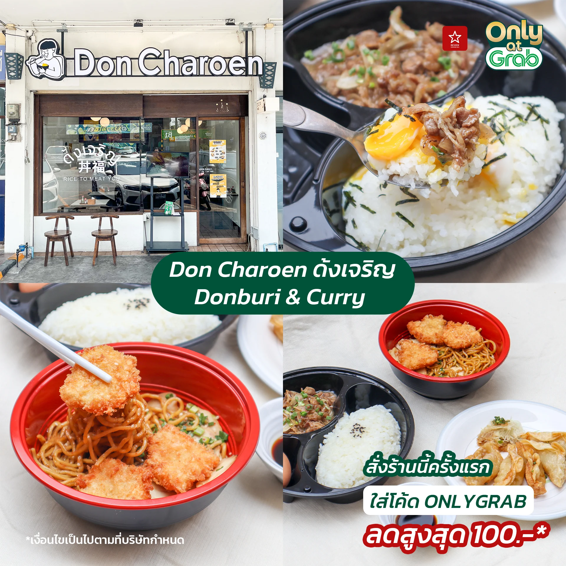 - สั่งร้านนี้ครั้งแรก ใส่โค้ด ONLYGRAB ลดสูงสุด 100.-*