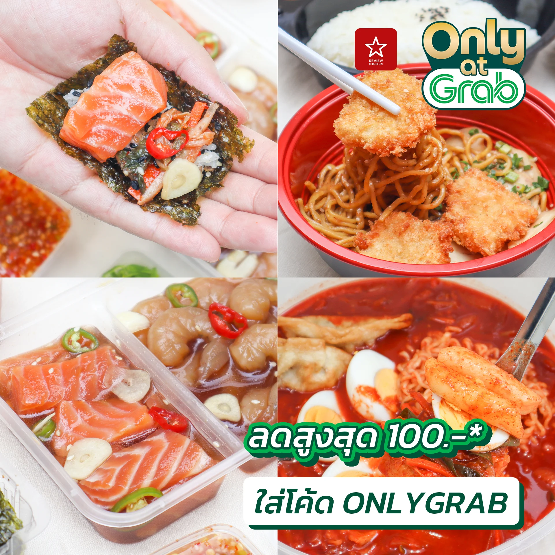 รวมร้านเด็ดเชียงใหม่ สั่งได้ Only at Grab สั่งร้านเหล่านี้ครั้งแรกใส่โค้ด “ONLYGRAB” ลดสูงสุด 100 บาท* ส่งฟรี 0 บาท*