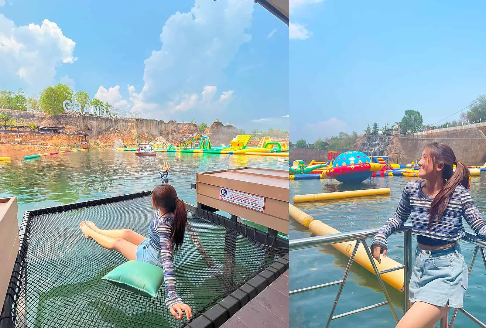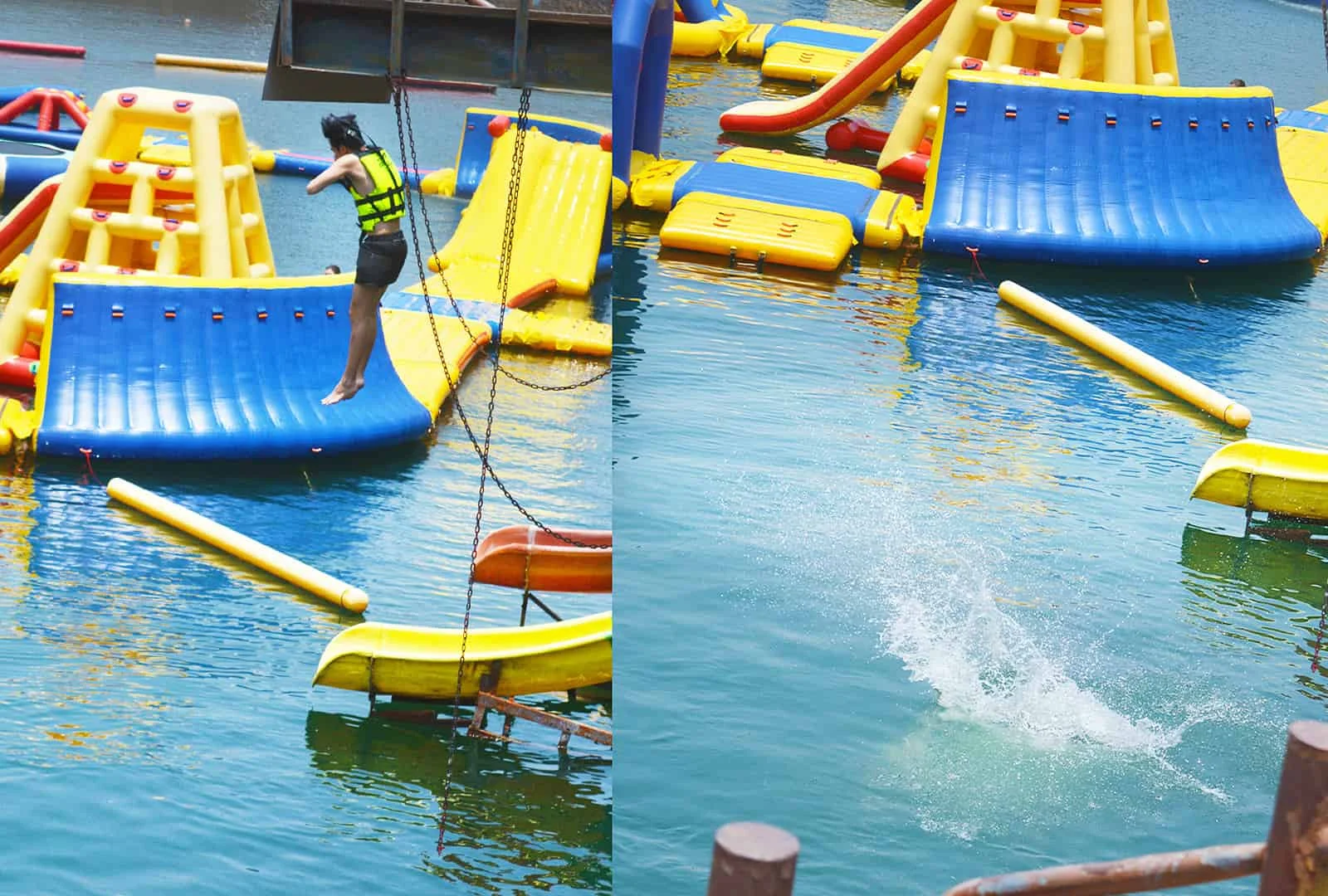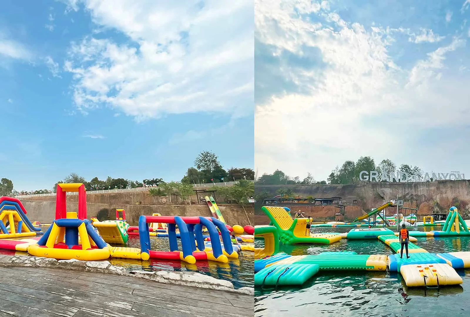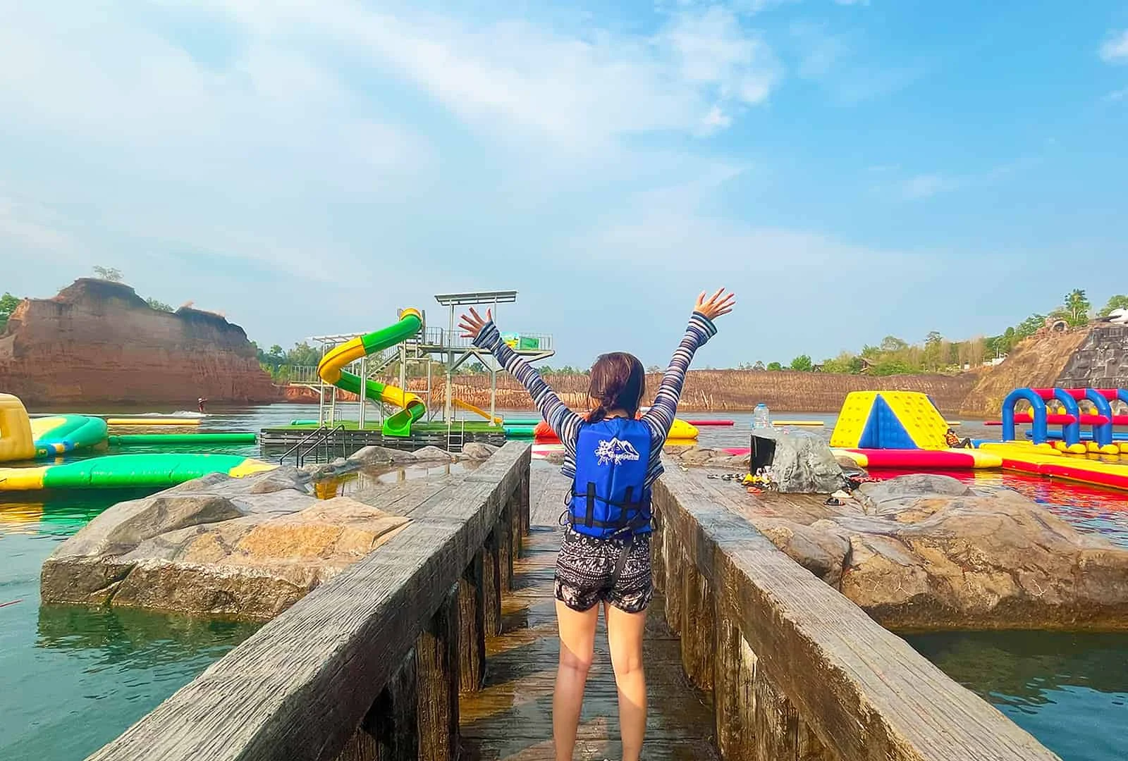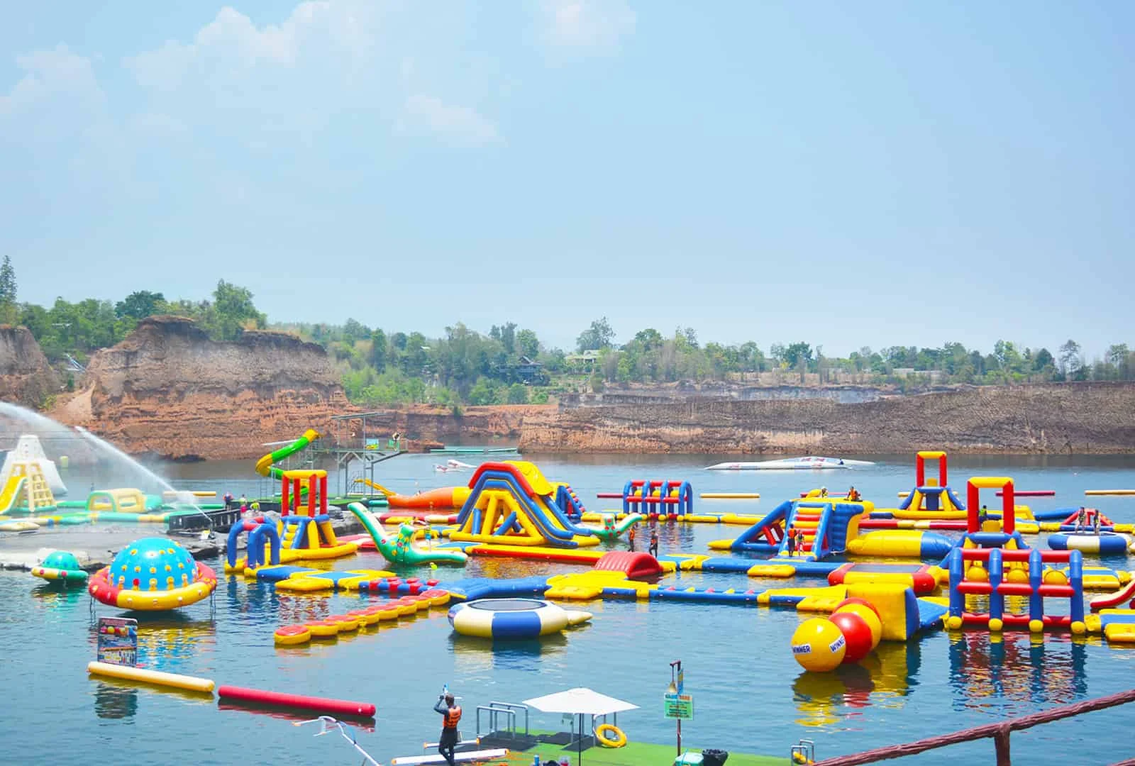 นั่งรถไปก็ชมกับบรรยากาศของเครื่องเล่นลอยน้ำ (Floating Adventure) เป็นเครื่องเล่นลอยน้ำขนาดยักษ์ ที่รวบรวม ความสนุก ความท้าทาย ตื่นเต้น เร้าใจและมีความแข็งแรงและได้มาตรฐาน แค่เห็นก็อยากไปเล่นแล้ววว