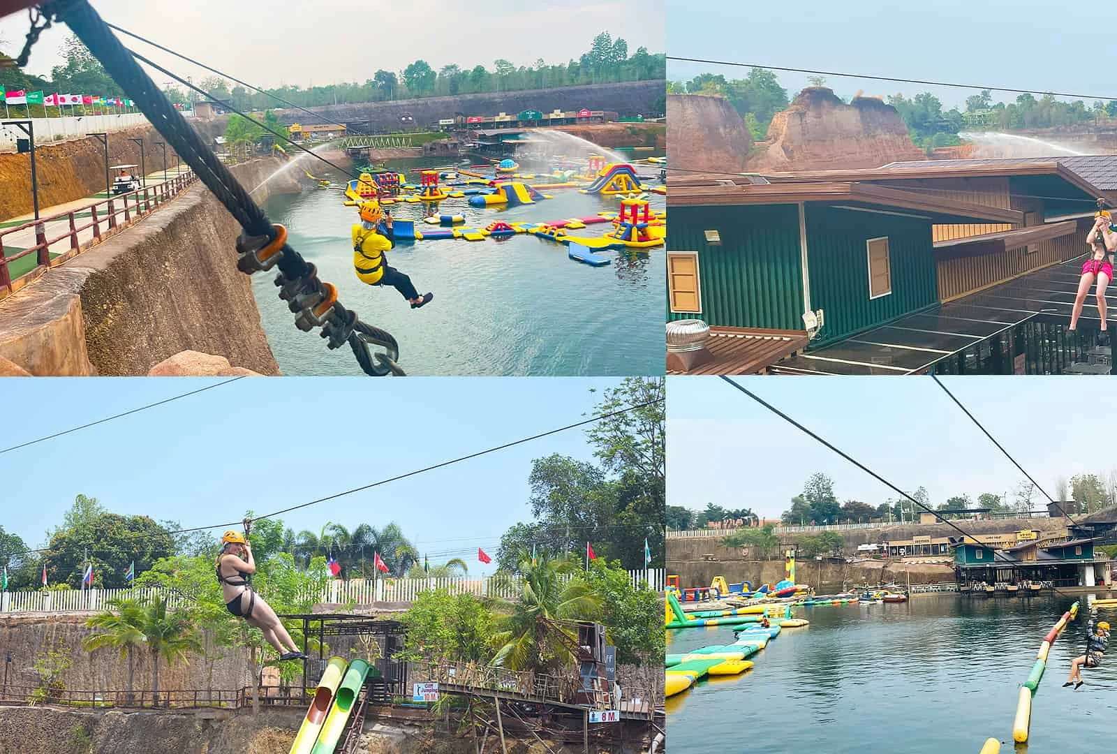 เล่นสไลเดอร์ยักษ์เสร็จ ยังไม่ทันได้หายหวาดเสียว แอดก็ไปต่อที่ ซิปไลน์ (Zipline) มี 2 สเตชั่น ยาวกว่า 400 เมตร มาตรฐานความปลอดภัยสูง ด้วยชุดอุปกรณ์ Safety Pezl จาก USA วิวดีวิวสวย ทุกคนชอบแน่นอน!