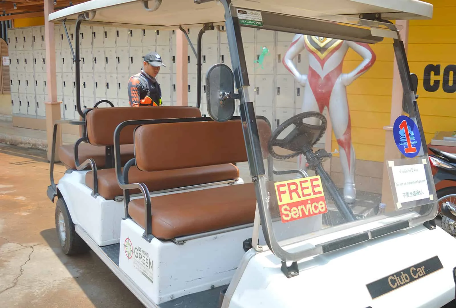 ซื้อบัตรมาแล้ว ก็จะมีรถกอล์ฟ (Clubcar) มารับเพราะทางเข้าก็ไกลนิดนึง นิดนึงจริงๆ