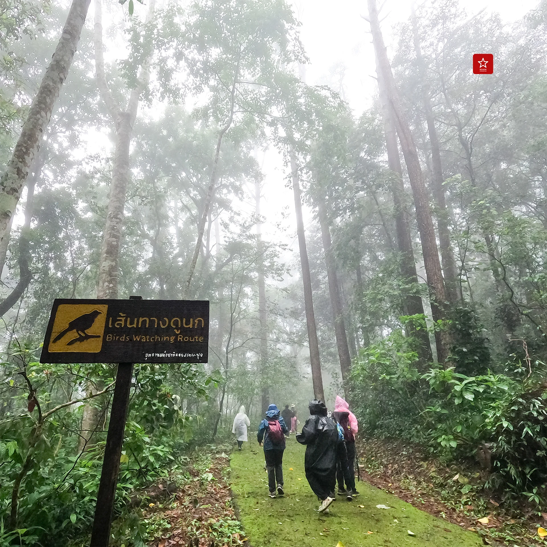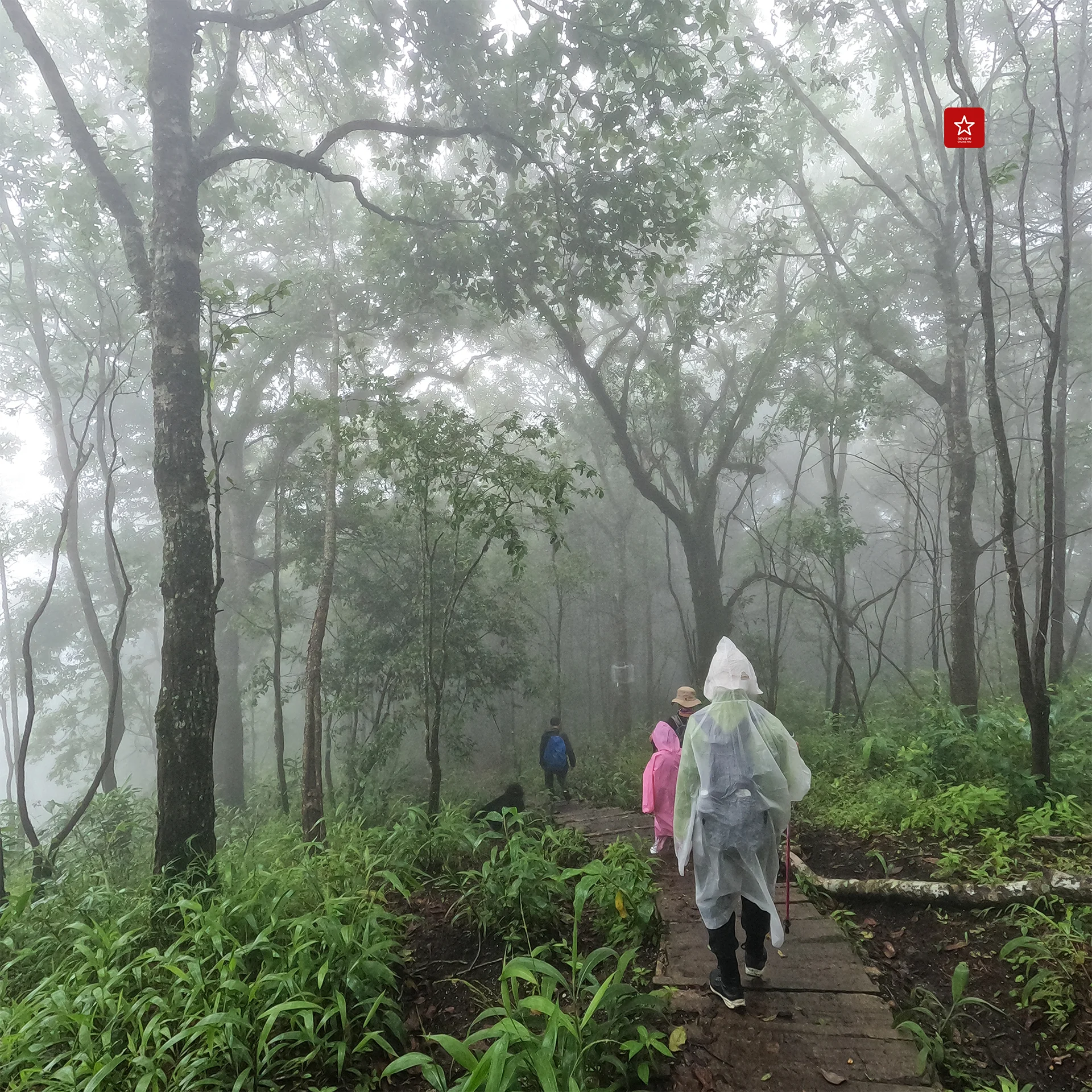 ฝนพรำก็ไม่ใช่อุปสรรค เพราะเราตั้งใจมาเดินเหยียบเมฆตากฝนบนยอดดอย ทริปนี้เรามีสมาชิกเป็นเด็กหญิงตัวน้อยมาร่วมเดินด้วย บอกแล้วไงว่าเดินสบาย เด็กๆ เดินได้ สุนัขเดินดี มีบางช่วงที่เป็นทางลาดชัน เพราะสภาพพื้นดินที่ชื้นแฉะจึงต้องเพิ่มความระมัดระวังในการเดินลง