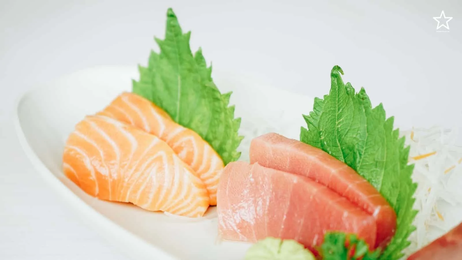 ซาซิมิ ในจานประกอบไปด้วยทูน่าโทโทโร่ไขมันกลาง Hamachi เเละแซลมอน