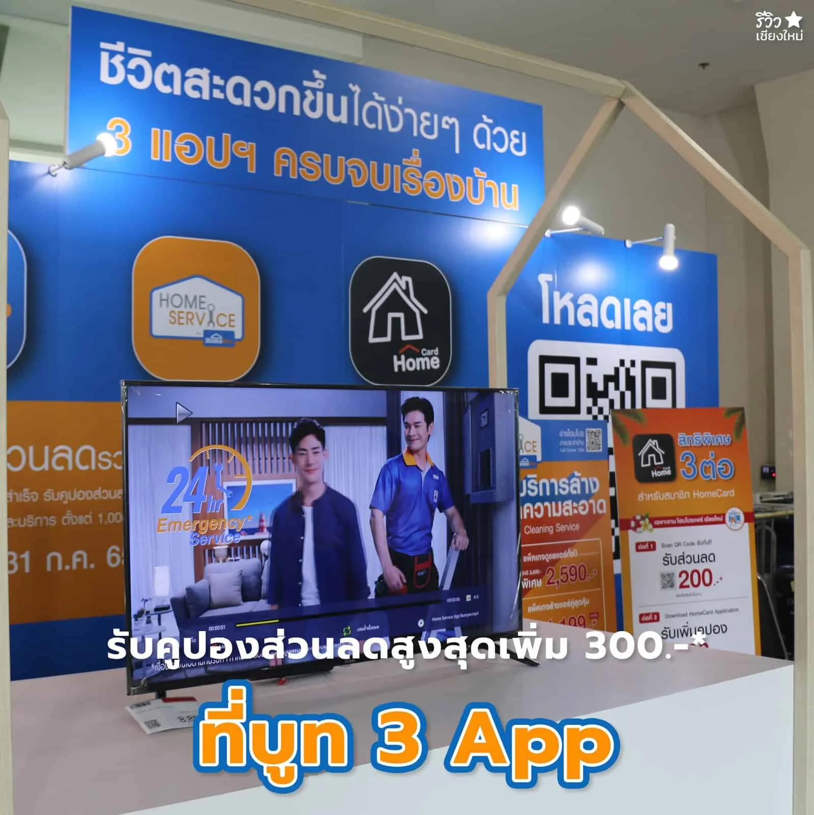 พิเศษ! รับเพิ่มคูปองส่วนลดสูงสุด 300.-* ภายในงานเมื่อร่วมกิจกรรมที่บูท 3 App ชีวิตสะดวกขึ้น ได้ง่ายๆ ด้วย 3 App ครบจบเรื่องบ้าน เพียงดาวน์โหลด Application HomePro, HomeService และ HomeCard รับเลย! คูปองส่วนลดสูงสุด 300.-*