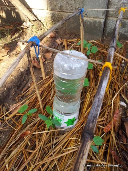 ในที่นี้หมายถึง เช่น ของผมเวลากินนมหมดขวด (ซื้อแบบแกลลอนเป็นลิตร) อย่าเอาทิ้ง เก็บไว้ใส่น้ำ โดยคว่ำหน้าลงกับดินในแปลงที่เราต้องการ หากวันไหนแดดแรง ดินแห้งไว มันก็จะดูดน้ำในขวดไปเติมโดยอัตโนมัติ เหมาะกับพืชที่ยังเล็กต้องการความเอาใจใส่เป็นพิเศษ หรือในกรณีที่เราไม่อยู่บ้านหลายวันก็ช่วยได้มาก