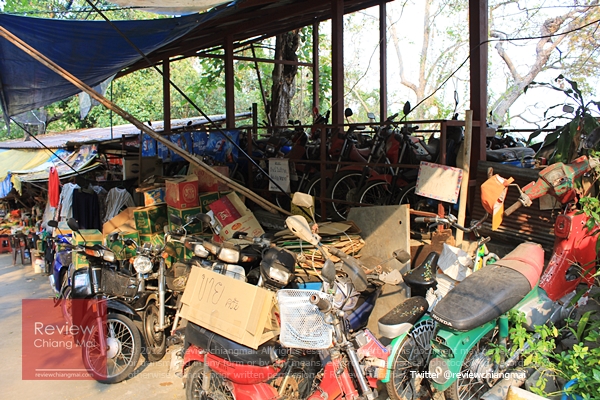 เดินเข้าไปข้างในอีกนิดมีร้านขายของชำพวกเครื่องดื่ม ขนมขบเคี้ยว ถัดไปท้ายสุดของร้านมีกองมอเตอร์ไซค์หลากหลายคัน สอบถามคุณลุงเจ้าของร้านขายของ แกบอกเป็นของกลุ่มอนุรักษ์รถเอามาฝากไว้ เพราะไม่มีที่จะเก็บ บางคันจอดข้างล่างก็ติดป้ายพร้อมขาย