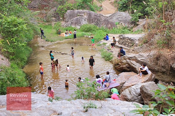 ฝ่าวงล้อมที่ขายของกินมาก็จะเจอน้ำตกห้วยแก้วกัน สภาพน้ำตกในช่วงหน้าร้อนแบบนี้ น้ำมีน้อยครับ เท่าที่เห็นจะมีแต่โขดหินก้อนใหญ่ กับสายน้ำไหลเอื่อยๆช้าๆ มาแบบน้อยๆ มีเด็กวัยรุ่น หนุ่มสาว ไปปูเสื่อนั่งเล่น หาอะไรมาทาน บ้างก็ไปนั่งเอาเท้าแช่น้ำให้เย็นหนำใจ ส่วนเด็กวัยกำลังซน ก็กระโดดเล่นน้ำจนเปียกปอนไปทั้งตัว