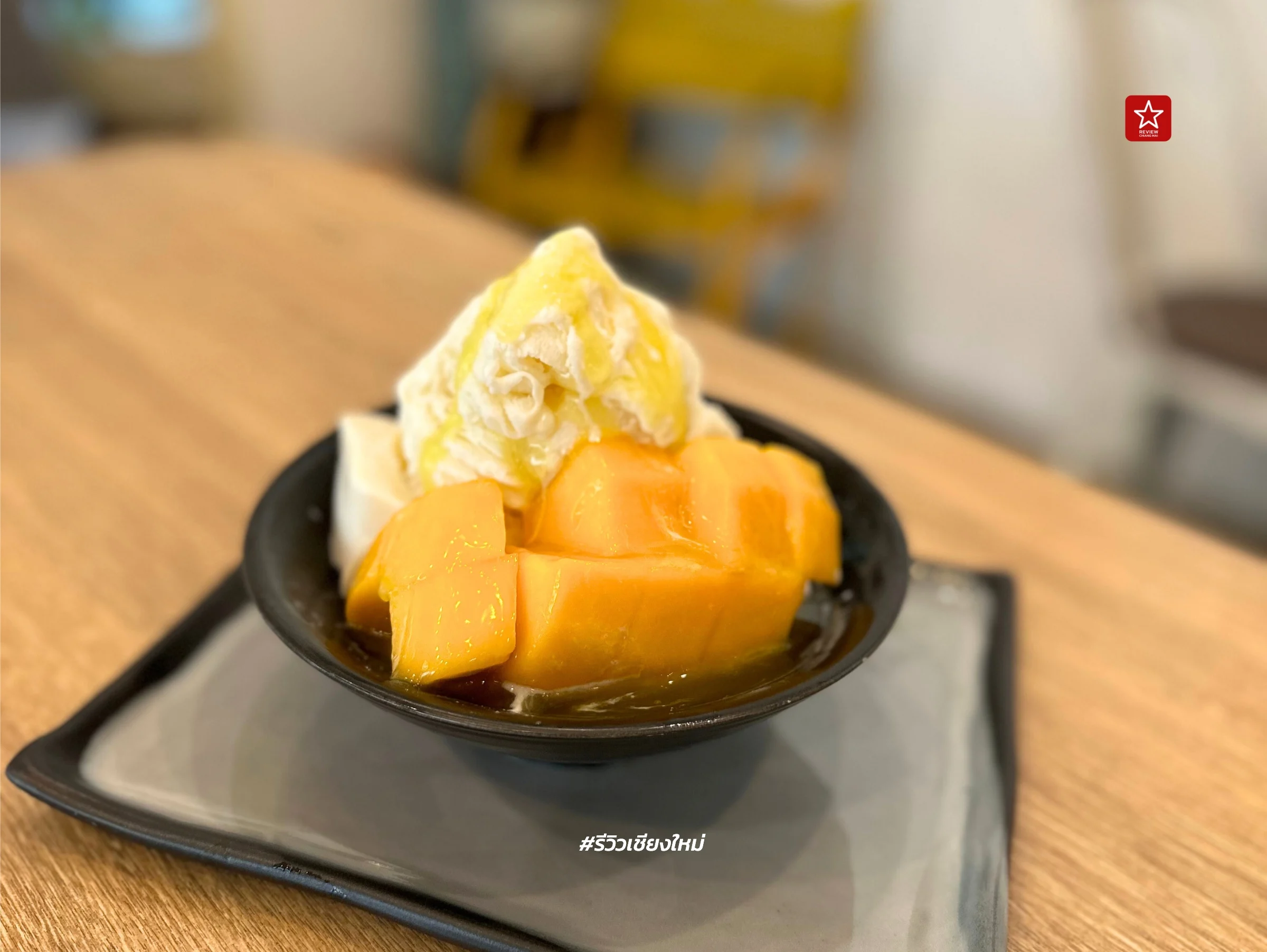 – Mango Milk Ice Lava ท็อปปิ้ง “มะม่วงสดมะม่วงน้ำดอกไม้ และ มะม่วงตามฤดูกาล ราดซอสมะม่วง และ พุดดิ้งนม