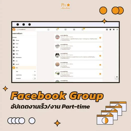 เป็นอีกช่องทางหนึ่งที่มีการอัปเดตงานการรับสมัครงานอย่างรวดเร็ว มีงานทุกประเภทเลย ตั้งแต่หน่วยงาน องค์กร บริษัท ห้าง ร้าน คนขับรถ ไปจนถึงแม่บ้าน งานค่อนข้างที่จะมีหลากหลาย อยู่ในทุกอำเภอของเชียงใหม่ แต่ในเมื่อมีการอัปเดตไว Post ที่มีคนประกาศหางานก็จะค่อยเลื่อนๆ ลงไป และไม่มีการจัดเป็นหมวดหมู่ วิธีการง่ายๆ คือค้นหางานที่เราจะหาแค่นีก็จะมีงานขึ้นมาเลย Facebook Group หางานในเชียงใหม่มีเยอะมาก แต่ละกลุ่มก็จะมีชื่อคล้ายๆ กันหมด แอดเลยรวบรวมกลุ่มที่มีคนอยู่ในกลุ่มเยอะ และการประกาศหางานก็เยอะด้วย