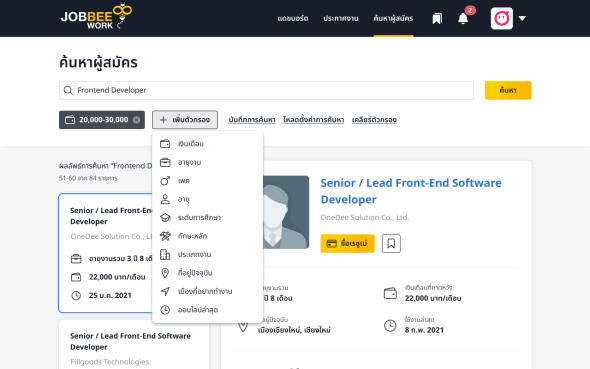 - สามารถค้นหาตำแหน่งงานที่เปิดรับสมัครได้เลย