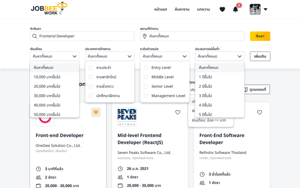 - สามารถค้นหาตำแหน่งงานที่เปิดรับสมัครได้เลย