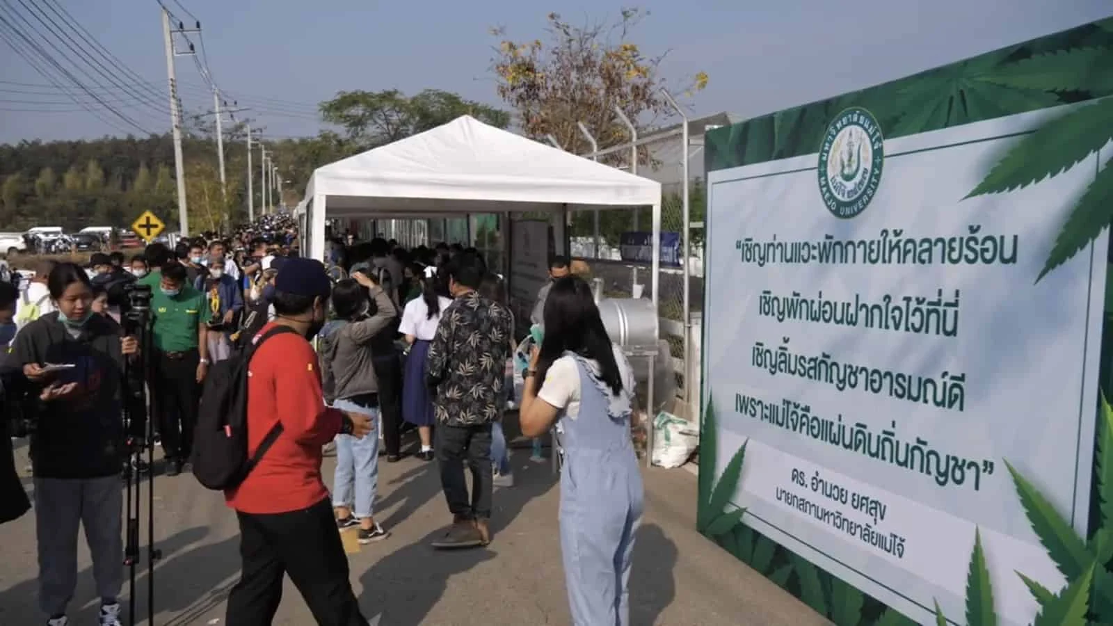 วันที่ 20 ก.พ.64 รายงานข่าวแจ้งว่า ที่มหาวิทยาลัยแม่โจ้ จ.เชียงใหม่ ประชาชนในจังหวัดเชียงใหม่ให้ความสนใจ พากันไปลิ้มลองรสชาติอาหารนับร้อยเมนูที่ปรุงจากใบและชิ้นส่วนต่างๆ ของกัญชา ภายในงาน “แม่โจ้ชวนยิ้ม ชิมกัญ (ชา)” ที่ศูนย์วิจัยและพัฒนาเกษตรธรรมชาติ มหาวิทยาลัยแม่โจ้ จัดขึ้นบริเวณโรงปลูกกัญชาทางการแพทย์ 16,700 ต้น ในพื้นที่ฟาร์มของมหาวิทยาลัย
