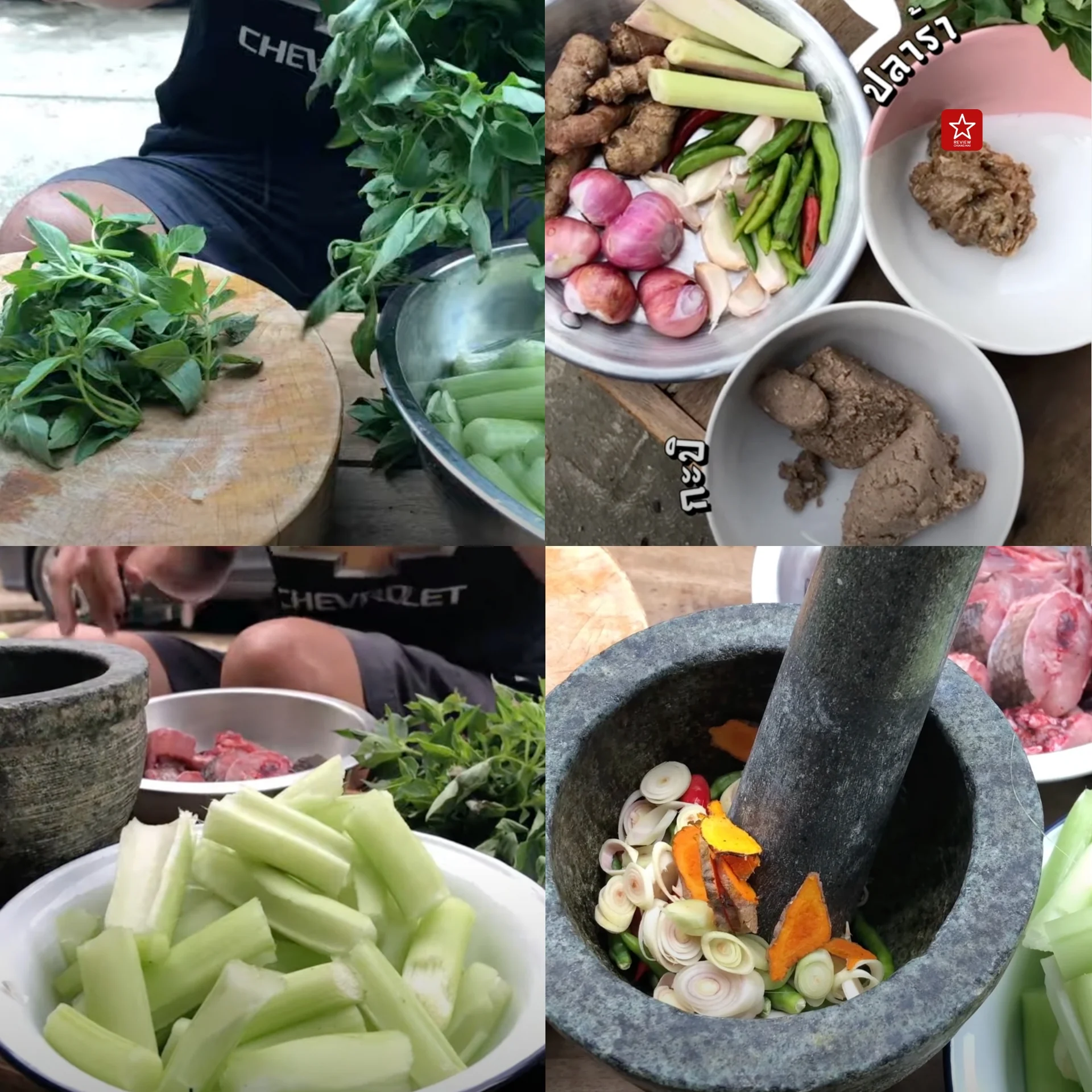 – นำเครื่องเคียงที่เตรียมไว้มาโขลกรวมกัน