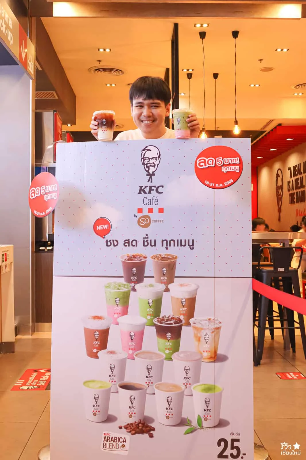 ขอย้ำ!! ลด 5 บาททุกเมนู ภายในวันที่ 16 – 31 กรกฎาคม 2565 นี้เท่านั้นน้าาา เฉพาะ KFC café by SO COFFEE สาขาที่ร่วมรายการ ถ้าในเชียงใหม่ก็จะมี รวมโชค มอลล์, เมญ่า เชียงใหม่, ตลาดเจริญเจริญ, โลตัส ฝาง, เชลล์ราชพฤกษ์ เชียงใหม่, โลตัส เชียงใหม่ คำเที่ยง, โลตัส จอมทอง เชียงใหม่