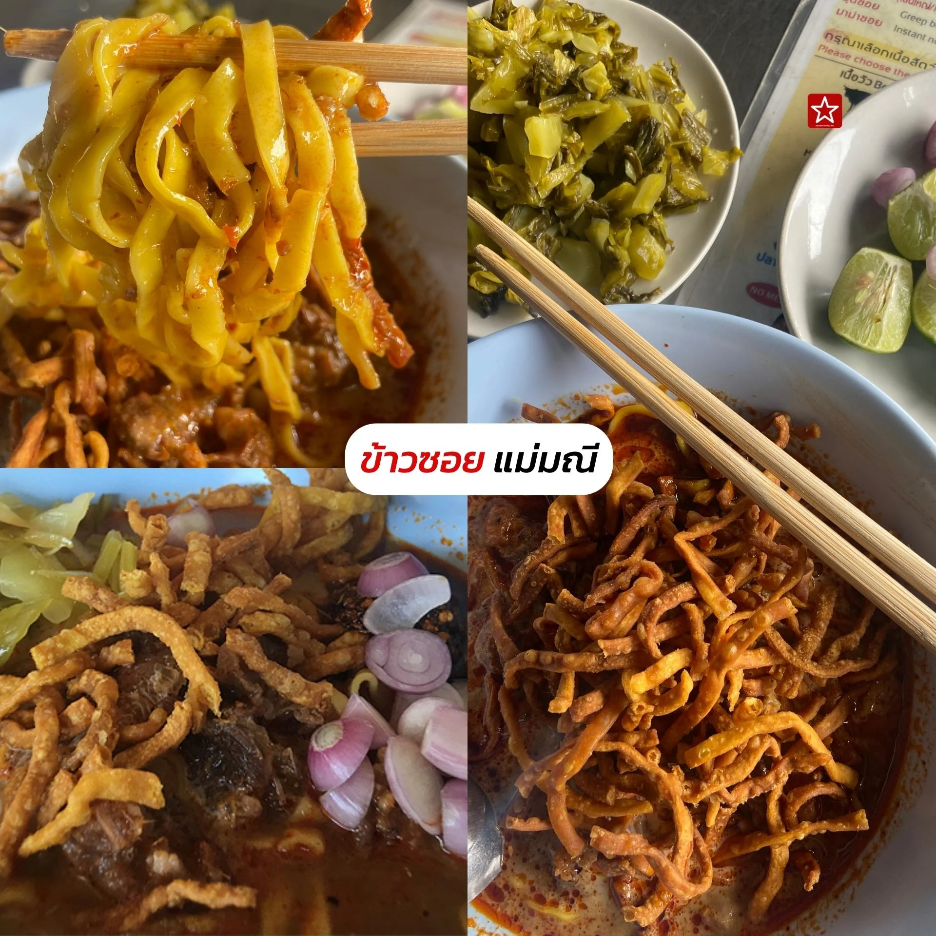 - ที่ตั้ง : ข้าวซอยแม่มณีในซอยร้านเดิม – ข้าวซอยแม่มณีสาขาซุปเปอร์ไฮเวย์