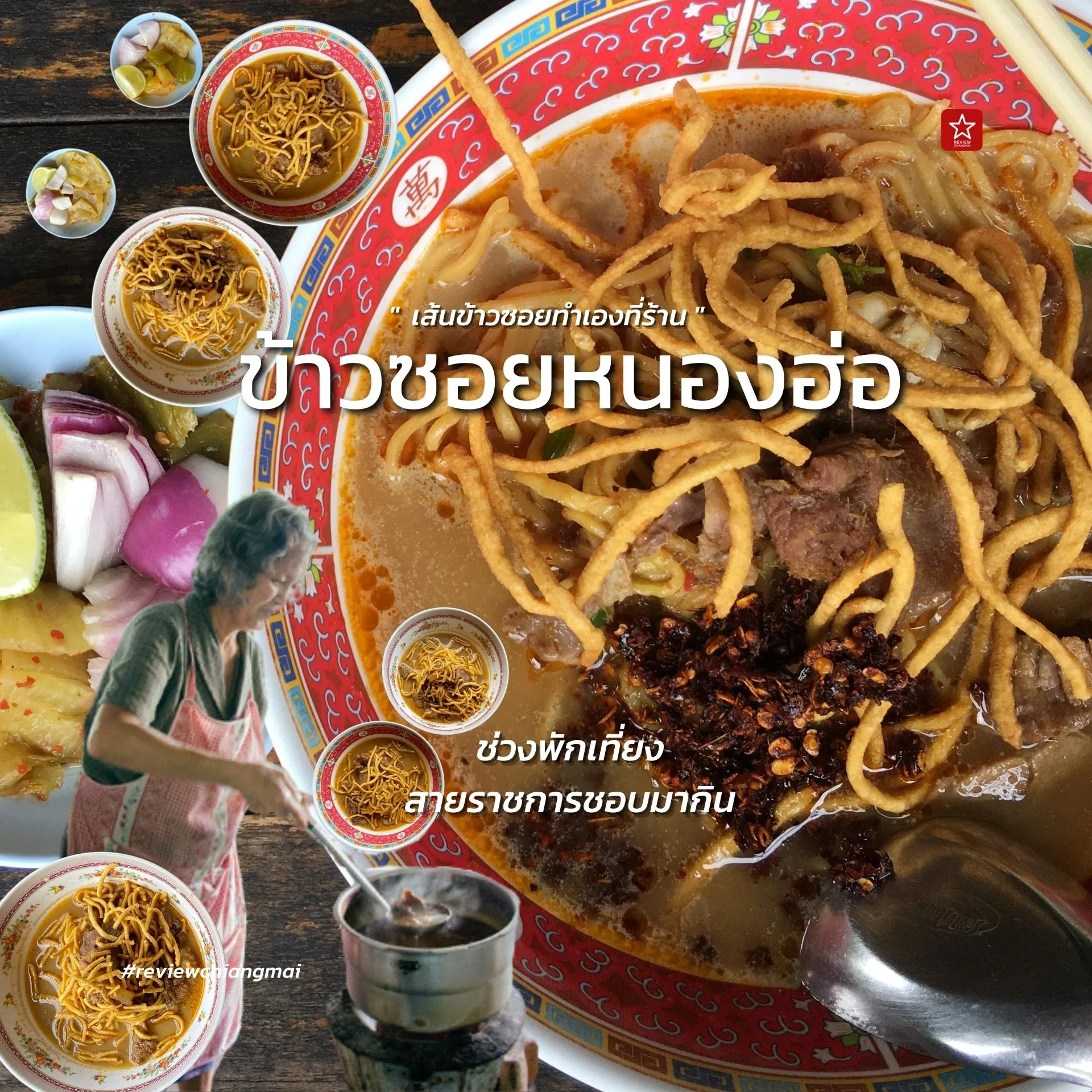 ร้านข้าวซอยหนองฮ่อ อันโด่งดังในละแวกหนองฮ่อ ด้วยความเก่าแก่ของร้านเปิดมานานตั้งแต่ปี 2537 กับข้าวซอยสูตรของจีนฮ่อ จุดเด่นเส้นข้าวซอยทำเองใหม่วันต่อวัน ยายพรรรณี(อายุ70กว่าปี)อยู่หน้าเตาถ่านเอง ขายมานาน30กว่าปี แล้วแอบเทใจให้เนื้อมากกว่าไก่ ผ่านไปแถวนั้นจอดรถข้างทางเจ้าไปอุดหนุนยายกันได้ น้ำข้าวซอยออกจะใสๆ ไม่ข้นคลักไม่หนักกะทิ ซดได้ รสกลางๆกำลังดี ไม่ต้องปรุงเพิ่มก็ยังได้ ทานคู่กับผักดอง หอมแดง บีบมะนาวลงไปนิดหน่อย อร่อยสุดๆ ลูกค้าส่วนใหญ่เป็นพนักงานและข้าราชการที่ทำงานแถวศาลากลางและละแวกใกล้เคียง