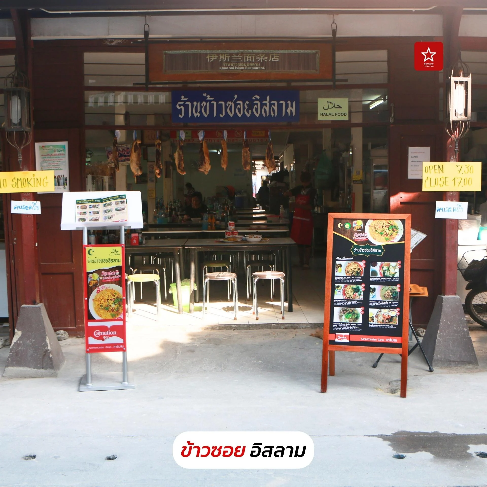 ก๋วยเตี๋ยวข้าวซอยอิสลาม เป็นอีกหนึ่งร้านที่เรียกได้ว่าเปิดมายาวนานอีกเช่นกัน เพราะรุ่นนี้เป็นรุ่นที่ 2 แล้ว ซึ่งดูแลโดยพี่สมศักษ์ ศรีจันทร์ดร จุดเด่นที่ทำให้ร้านนี้ยังเป็นที่กล่าวขวัญถึงอย่างมากคือ เส้นที่แบน เหนียวนุ่มไม่เหมือนใคร บวกกับน้ำแกงที่เคี่ยวจนหอมมัน และยิ่งกว่านั้นคือสามารถสั่งลดหรือเพิ่มความมันของน้ำแกงได้ เพราะทางร้านจะแยกน้ำกะทิกับน้ำแกงไว้ เมนูแนะนำ ข้าวซอยเนื้อ