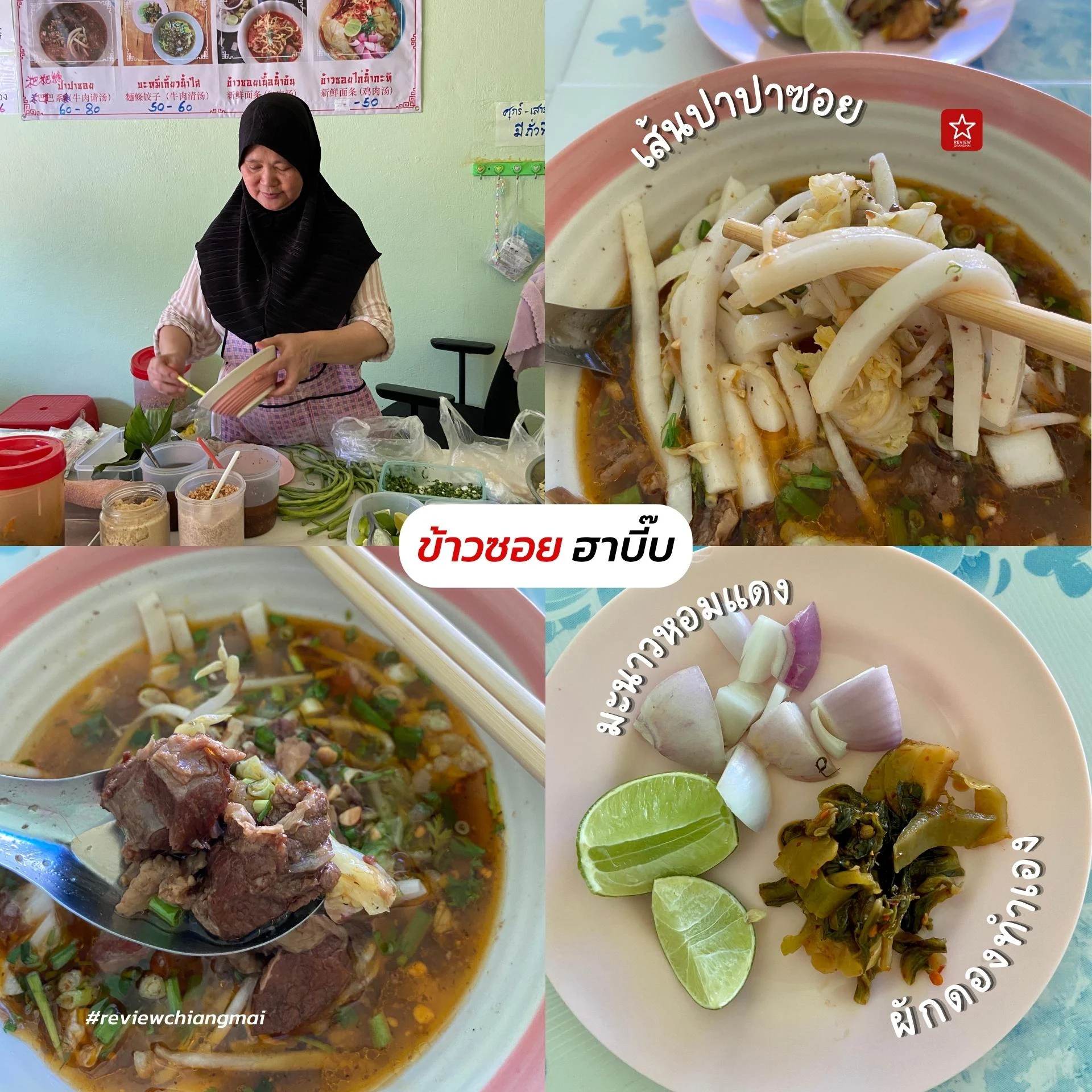 ร้านข้าวซอยฮาบี๊บ ร้านข้าวซอยออริจินอลส์ ต้นตำรับสไตล์ยุนนาน โดยที่นี่จะมีเสิร์ฟข้าวซอยปกติทั้งเนื้อและไก่ โดยเมนูที่แนะนำให้มาลองจะเป็นเมนูข้าวซอยยูนนานอย่าง “ ปาปาซอย ” ข้าวซอยเส้นสดที่ทำมาจากข้าวกล้องบนดอยมาซอยตัด จนออกมาเป็นเส้นข้าวซอยขาว ตัวเส้นใหญ่คล้ายอุด้ง ให้สัมผัมที่เหนียว กินกับน้ำแกงข้าวซอยใสๆ ให้รสชาติที่แปลกลิ้น แต่กินได้เรื่อยๆ ในน้ำซุปเองจะมีชะโก เป็นเครื่องเทศสำคัญในพริกแกงน้ำข้าวซอย ช่วยเพิ่มความพิเศษให้ข้าวซอยของทางร้านตามสไตล์ยูนนาน เครื่องเคียงเองก็นับว่าดีเลยโดยเฉพาะผักดองที่เปรี้ยวถึงใจ ชูรสเมื่อกินใส่ข้าวซอย ใครที่รู้ว่าเป็นสายข้าวซอยสไตล์ดั้งเดิม ควรมาลองชิมสักครั้ง คุณป้าเจ้าของร้านยืนยันว่า นี่แหล่ะคือ ข้าวซอยของจริงเพราะใช้ข้าวจริงๆ ส่วนที่เห็นทั่วไปนั้นเขาเรียกว่า “บะหมี่ซอย” เมนูมีทั้งปาปาซอยน้ำใส ข้าวซอยไก่น้ำกะทิ ข้าวซอยเนื้อน้ำข้น
