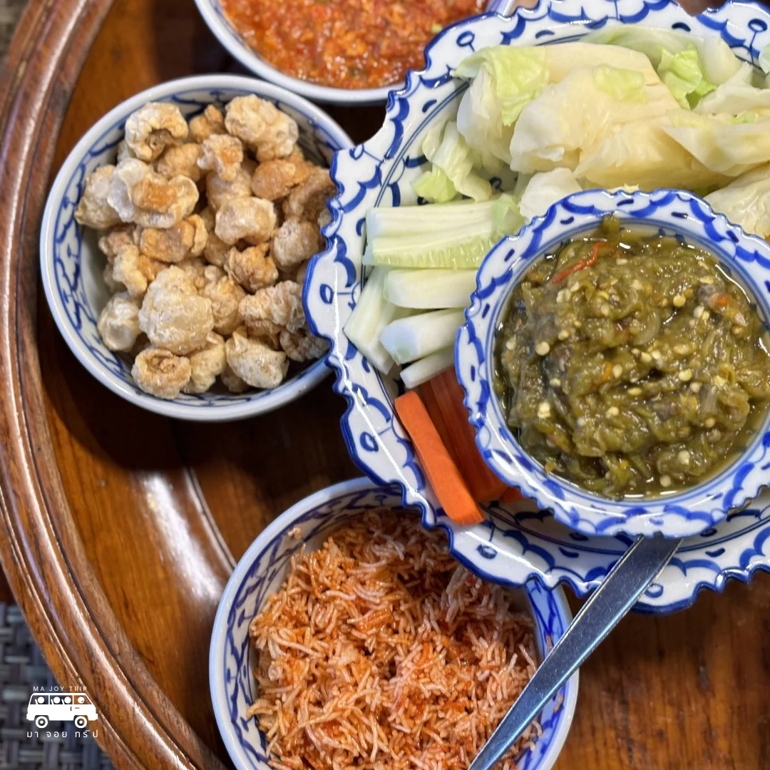 • นํ้าพริกหนุ่ม พร้อมผักลวก (Grilled Young Chili Paste with Steamed Vegetables)
