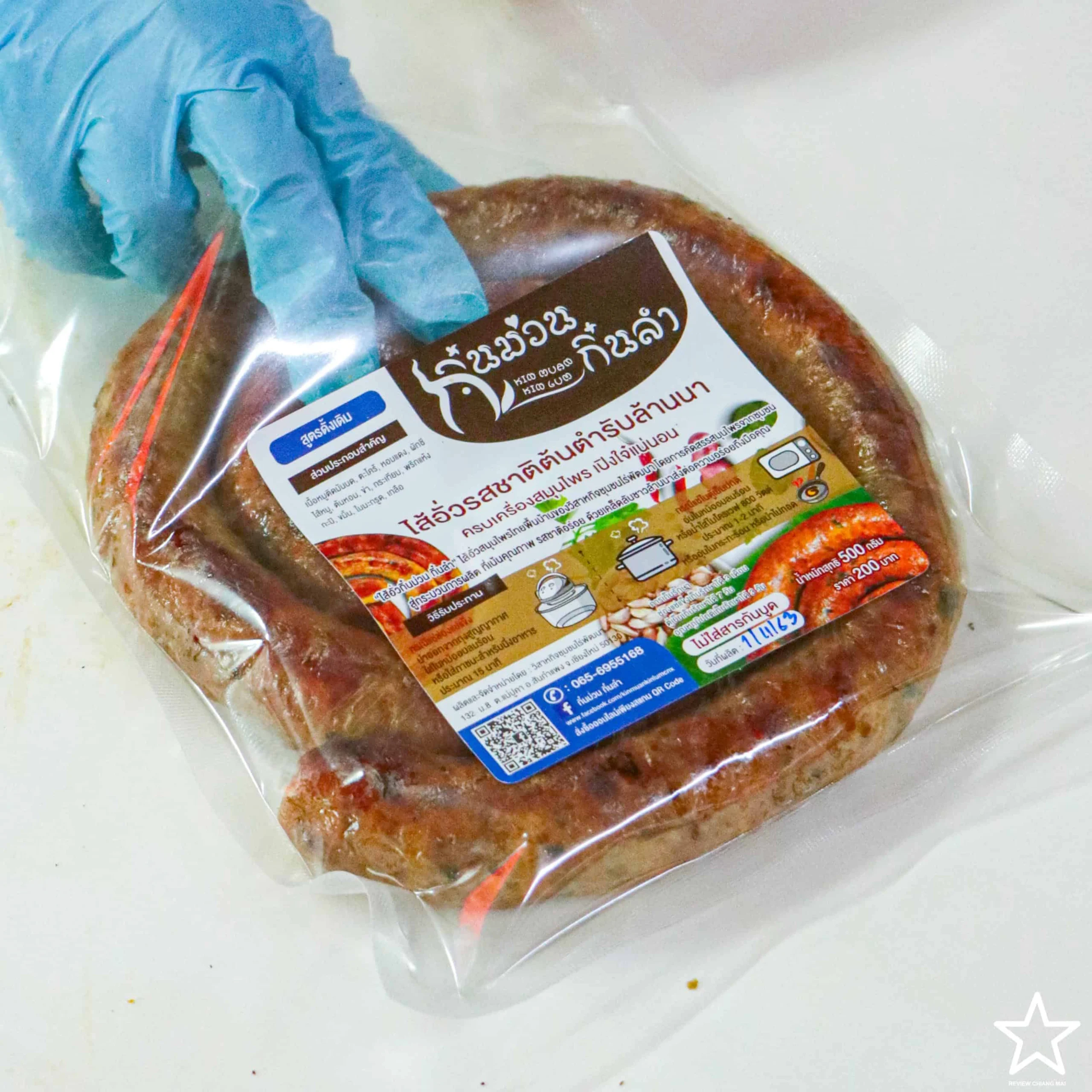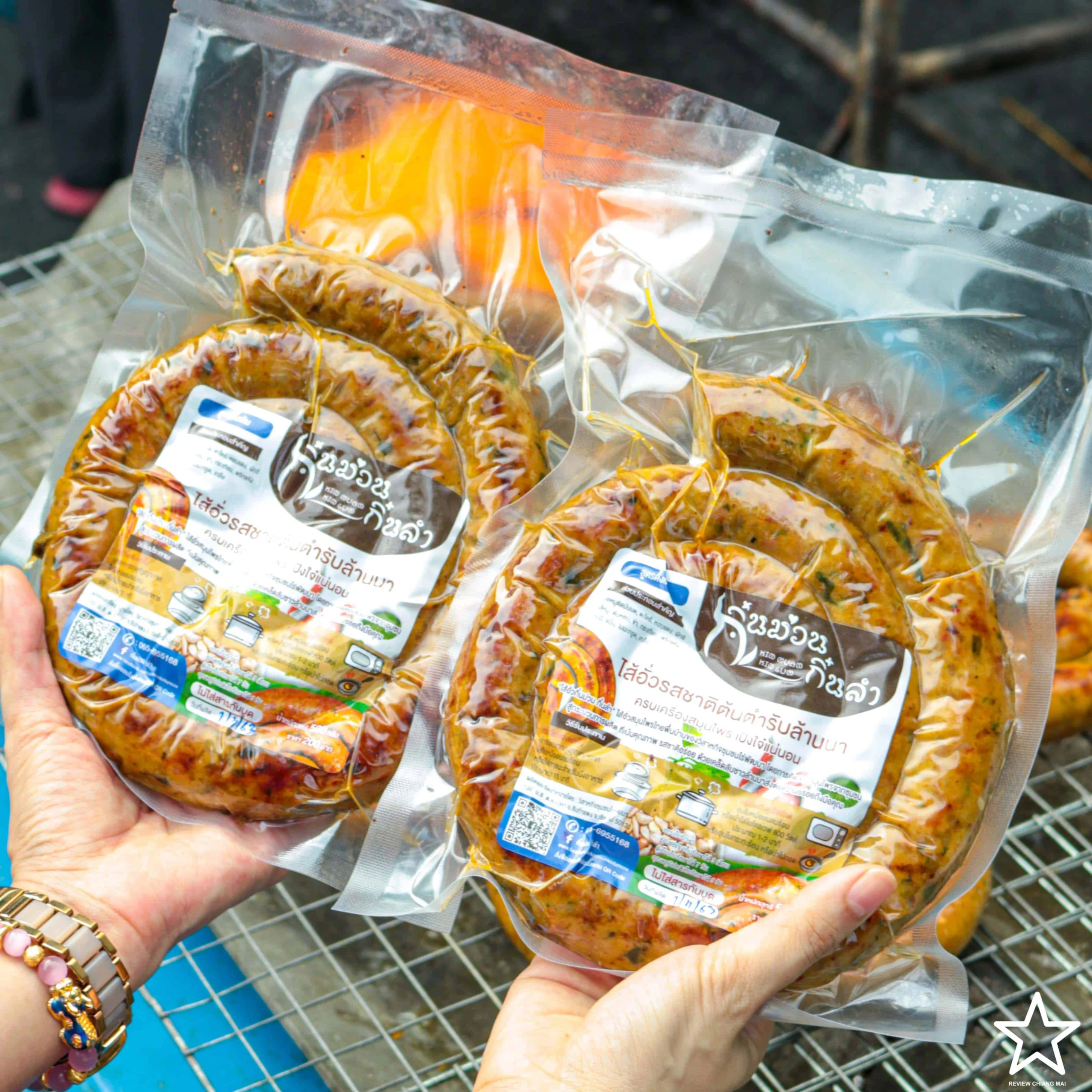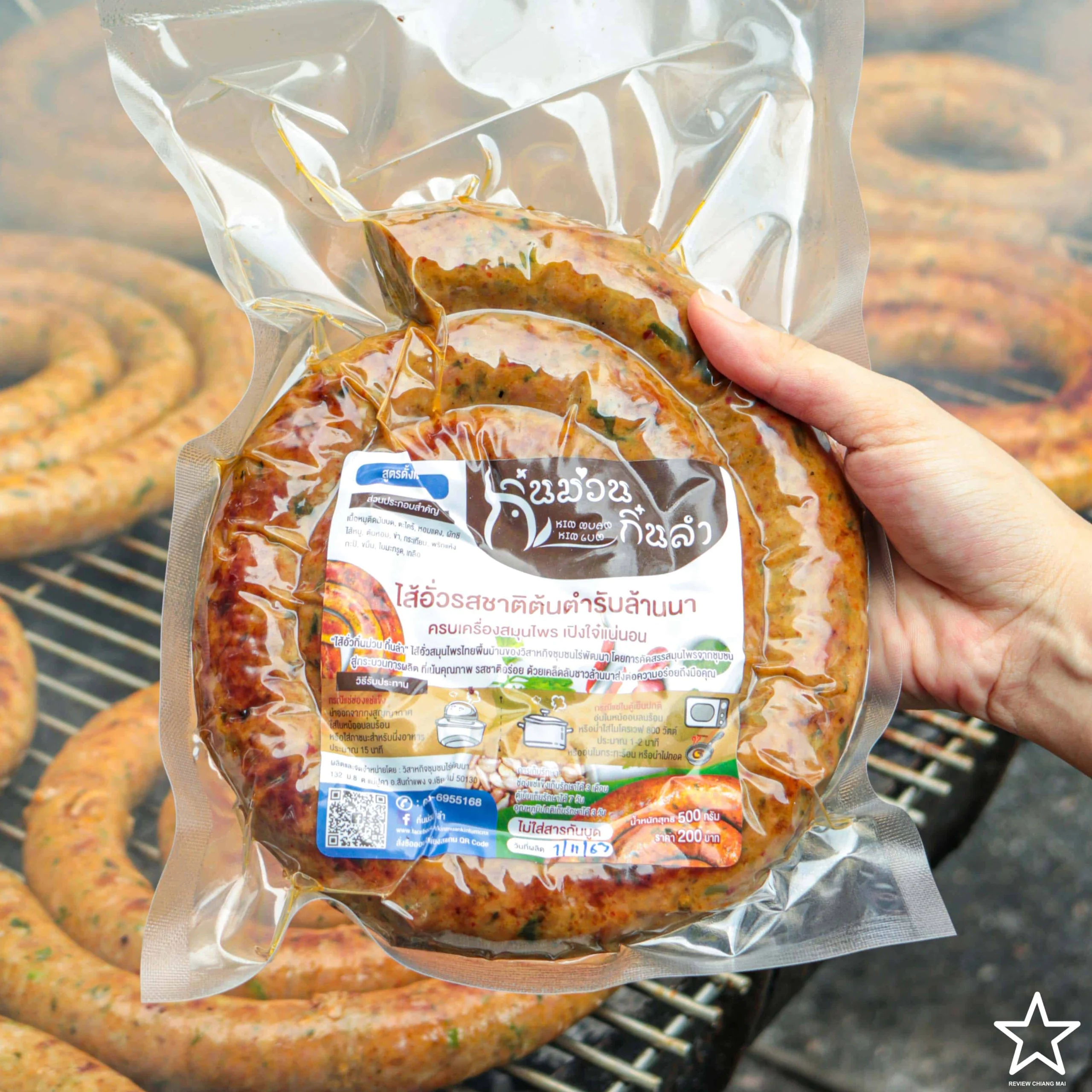 ไส้อั่ว ของที่นี่มีความพิถีพิถันในการทำมาก คือโดยส่วนใหญ่ ไส้อั่วที่คนมักซื้อไปเป็นของฝากเชียงใหม่ จะใช้วิธีการ นึ่งแล้วค่อยเอาไปย่าง แต่ “กิ๋นม่วน กิ๋นลำ” จะใช้ไฟอ่อนค่อยๆ ย่าง~ ให้ได้กลิ่นควัน และสมุนไพร มีรสชาติที่เข้มข้น อีกทั้งยังไม่ใส่สารกันบูด แล้วเขายังกล้ารับประกันคุณภาพสินค้าทุกชิ้นด้วยนะเออ