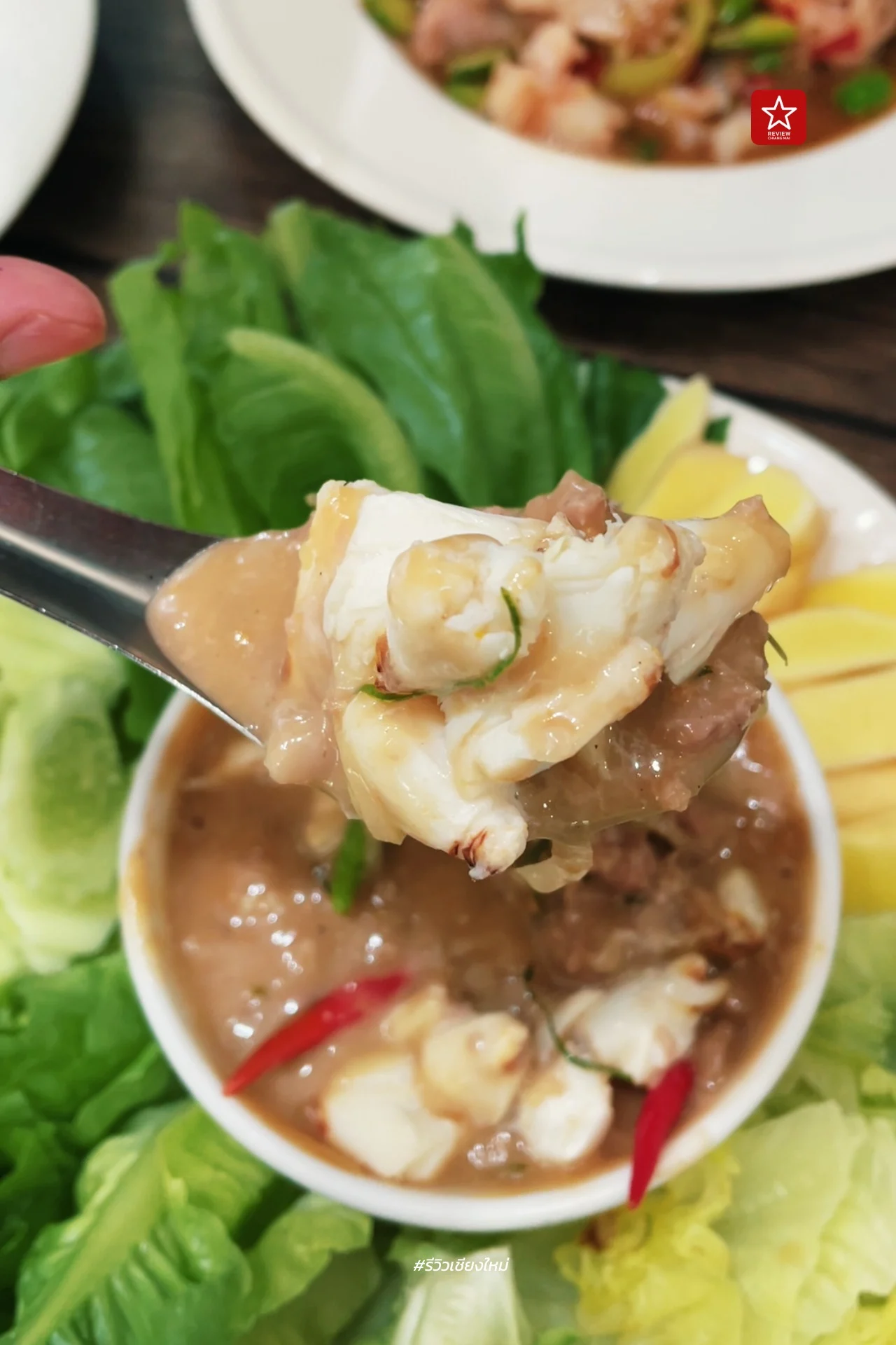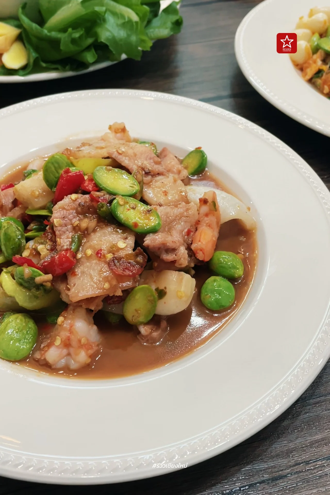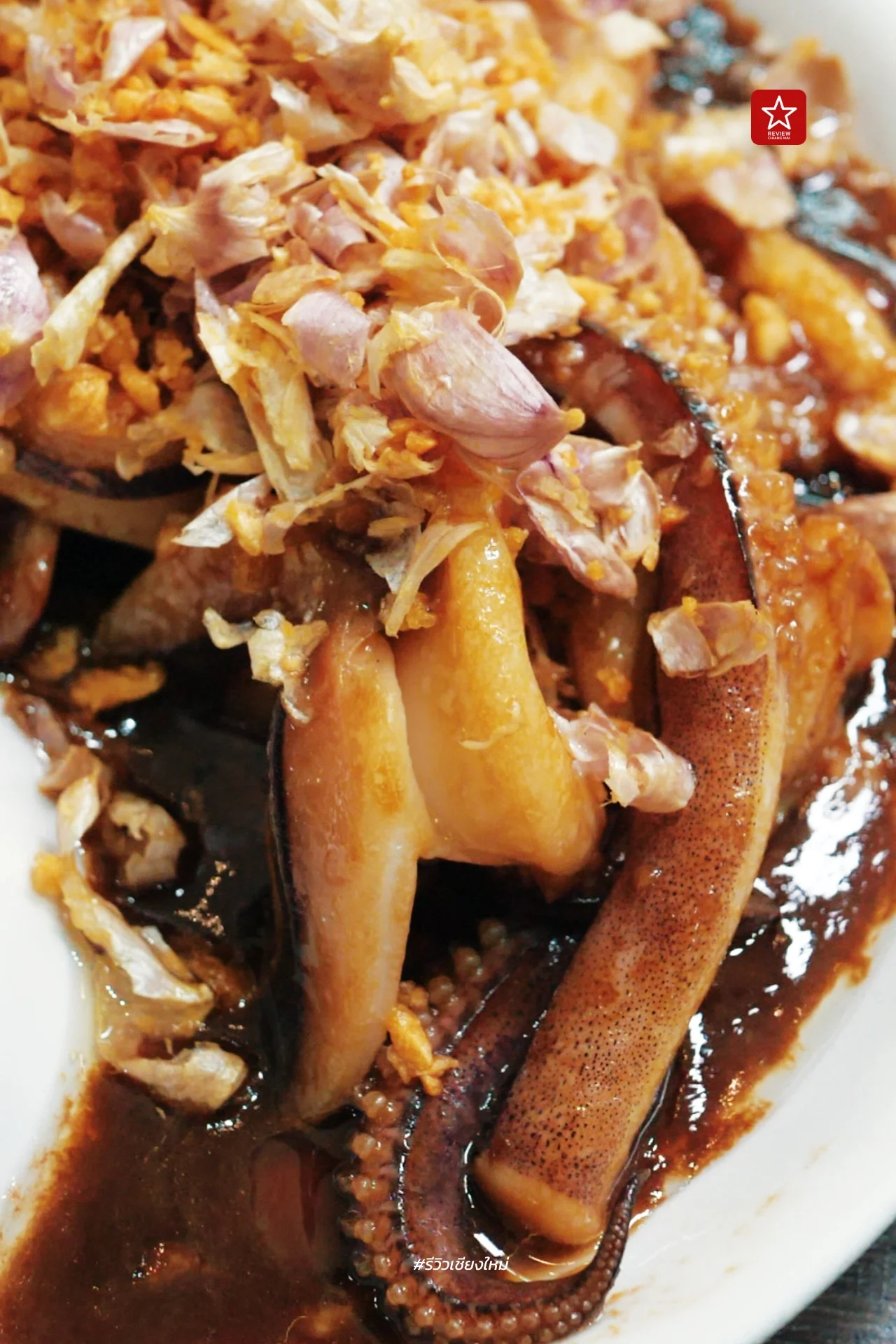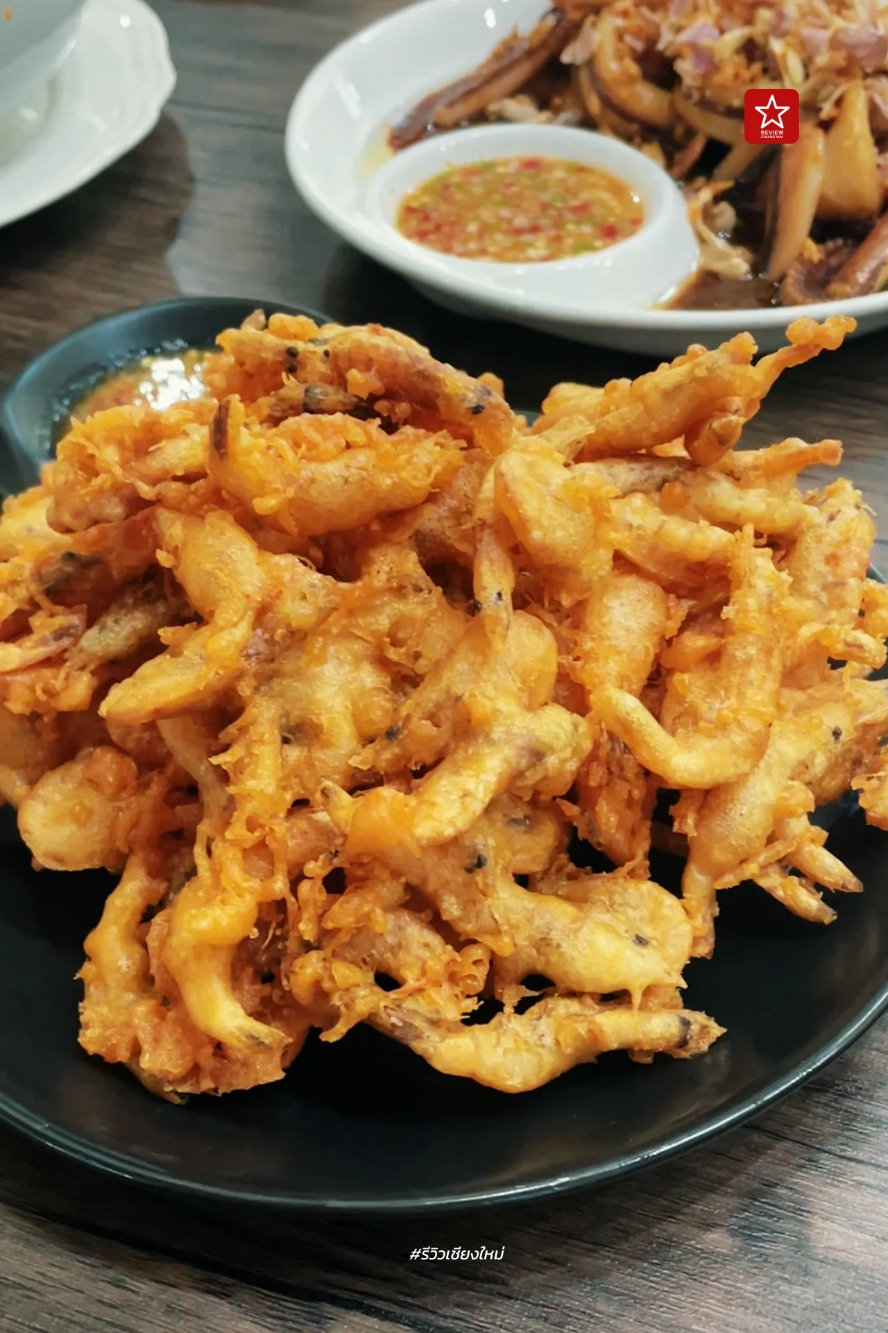ไม่มีอาหารเหนือ ปกติจะไม่เพิ่มไลน์อาหาร แต่ทุกๆ 2-3 ปี จะพยายามเพิ่มไลน์อาหารเข้าไปในออเดอร์บ้าง ตัดบ้างเพิ่มบ้างแต่พี่ก็จะไม่ได้เพิ่มเยอะ อาหารทำที่ตัวเองถนัด อย่างหมึกเกาะช้างพี่ก็จะบวกค่าส่ง มันก็จะแพงกว่านิดหน่อย พี่จะเน้นที่วัตถุดิบอย่างปลาคังก็จากเชียงราย เน้นปลาน้ำไหล วัตถุดิบจะไม่พิเศษมาก แต่จะเน้นของสด คนที่ส่งวัตถุดิบให้เราก็ส่งมาตั้งแต่รุ่นพ่อรุ่นแม่ อาหารก็พัฒนาจากแม่ไม่ได้ดั้งเดิมขอเก่าก็มีของใหม่ก็มี สไตล์การกินมันก็จะเปลี่ยนกันไป อาหารมันก็พัฒนาขึ้นตามลำดับ พี่ก็พยายามเปลี่ยน