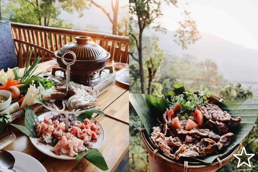 ไม่ว่าจะเป็นส้มตำใบเมี่ยง ปลาสะเต๊ะลานนา ทอดมันไส้อั่ว หมึกกะตอยทอด ทานข้าวอิ่มแล้วอย่าเพิ่งไปไหน ทางที่พักยังมีเครื่องดื่มเย็นๆ และเมนูใหม่ๆ ให้เลือกจิบก่อนนอนอีกด้วย - หลายคนเคยถามว่าถ้าไม่ได้มาพักแต่แวะมาดื่มกาแฟ ทานอาหาร ถ่ายรูปวิวสวยๆ ได้ไหม บอกเลยว่าได้จ้า แวะมานั่งพักผ่อนชิวๆ กันได้