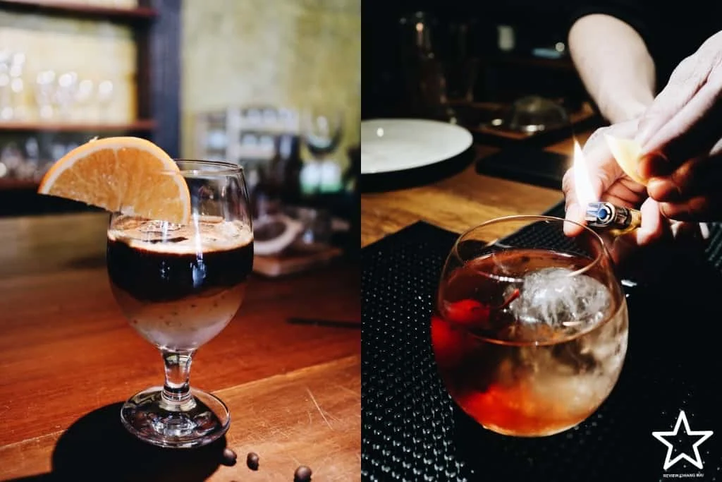 ด้านขวาคือ Old Fashionedด้านซ้ายคือมาตินี่ลิ้นจี่ ราคา 250 บาท