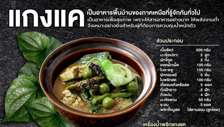 แกงแค เป็นอาหารพื้นบ้านของภาคเหนือที่รู้จักกันทั่วไป แกงแคเป็นอาหารเพื่อสุขภาพ เพราะให้สารอาหารอย่างมาก ให้พลังงานต่ำ จึงเหมาะอย่างยิ่ง สำหรับผู้ที่ต้องการควบคุมน้ำหนักตัว มีสรรพคุณทางยาหลายขนาน